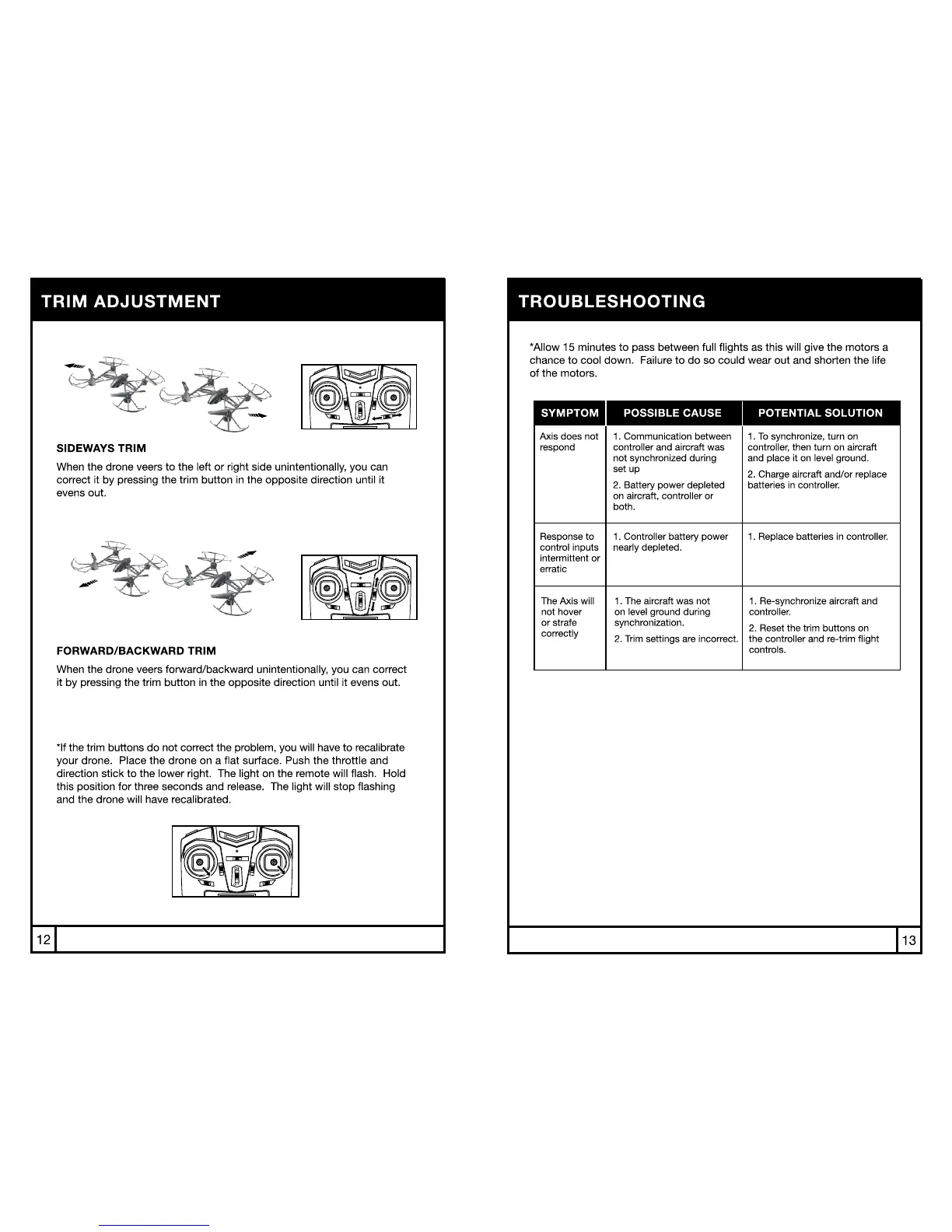 Protocol AXIS WITH CAMERA RC DRONE - Sideways Trim; Forward;Backward Trim; Troubleshooting