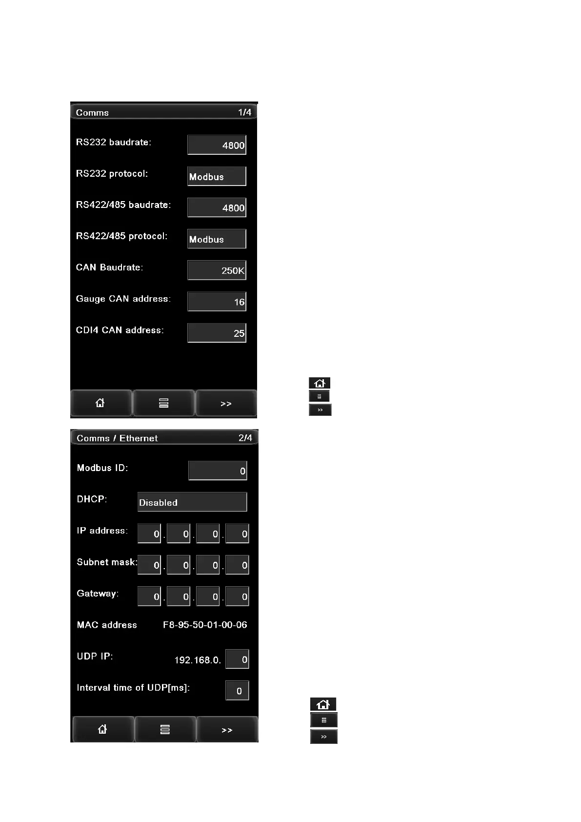 - Select RS422 baud rate from options: 4800; 9600; 19200;