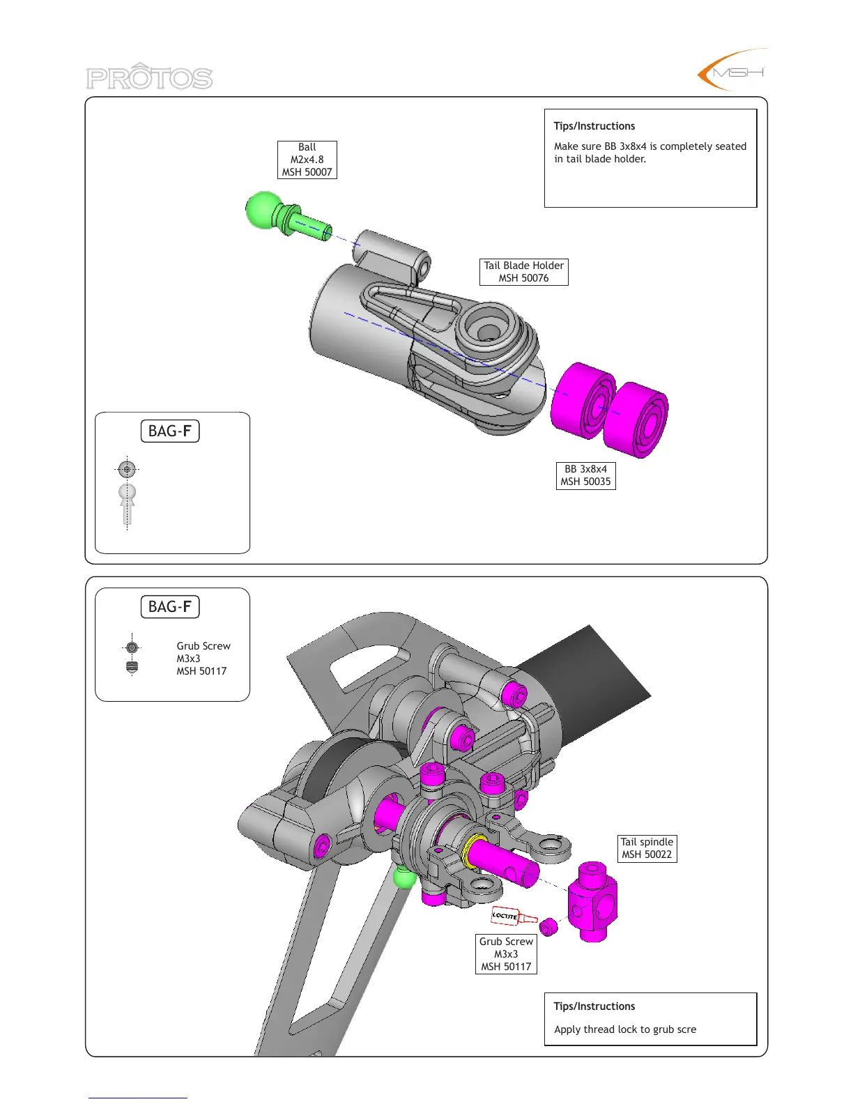 Protos Plastic 500 - Bag-F: Tail Blade Holder Assembly