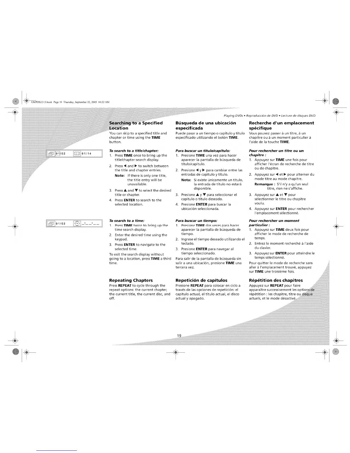 Playing DVDs • Reproduccidn de DVD • Lecture de disques DVD