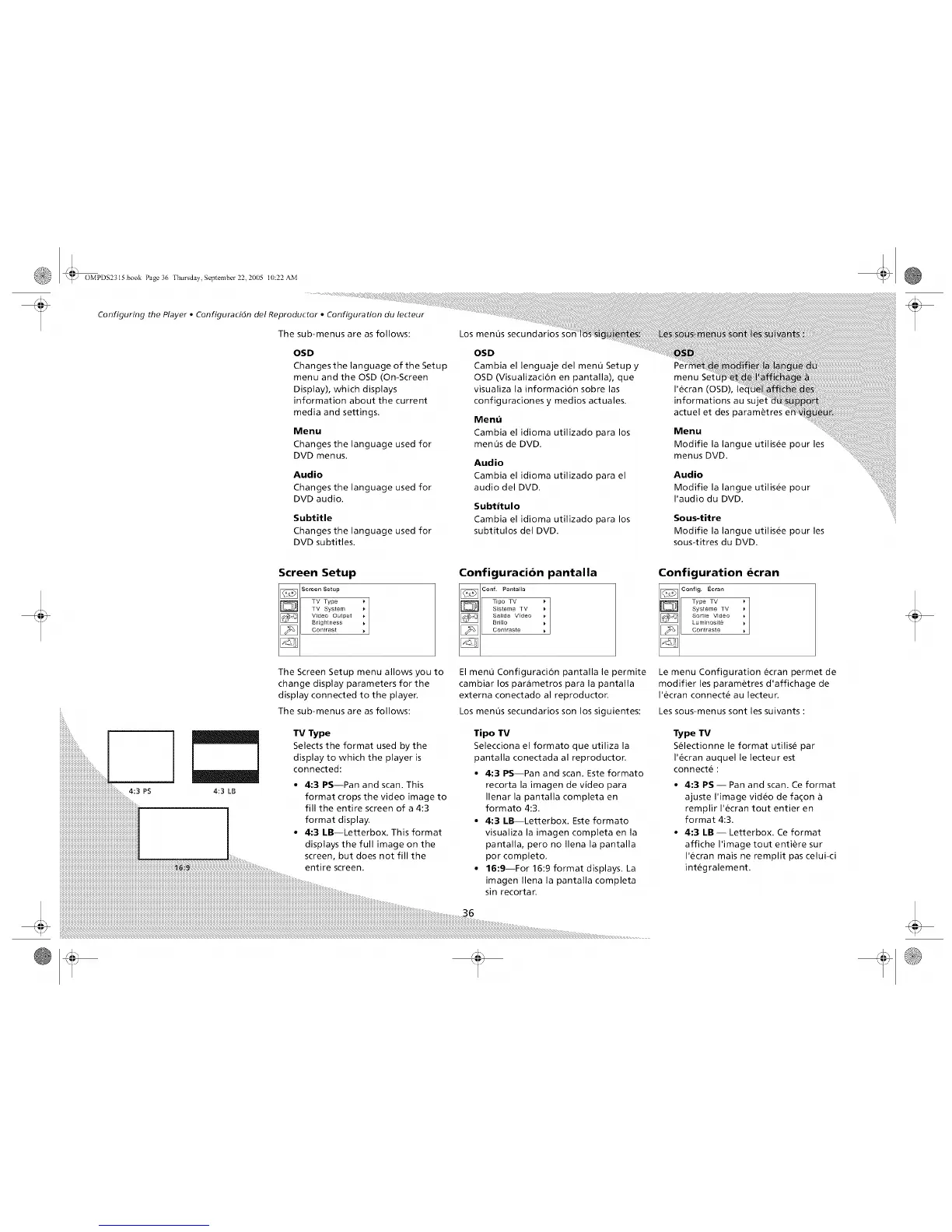 Configuring the Player • Configuracidn del Reproductor • Configuration du lecteur