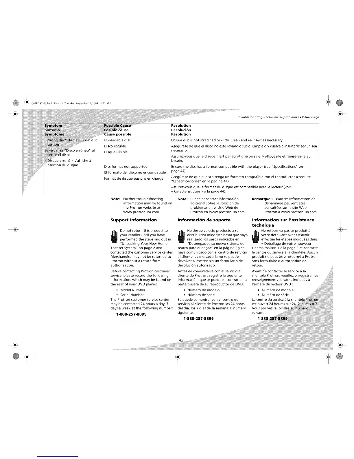 Troubleshooting • Soluci6n de problemas • D6pannage