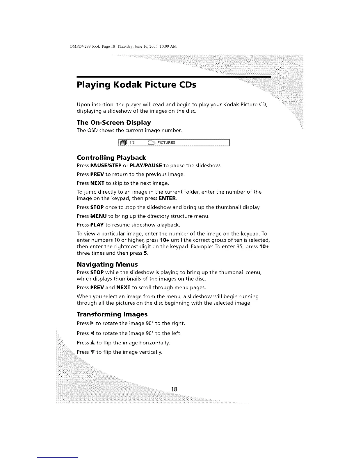 Upon insertion, the player will read and begin to play your Kodak Picture CD,