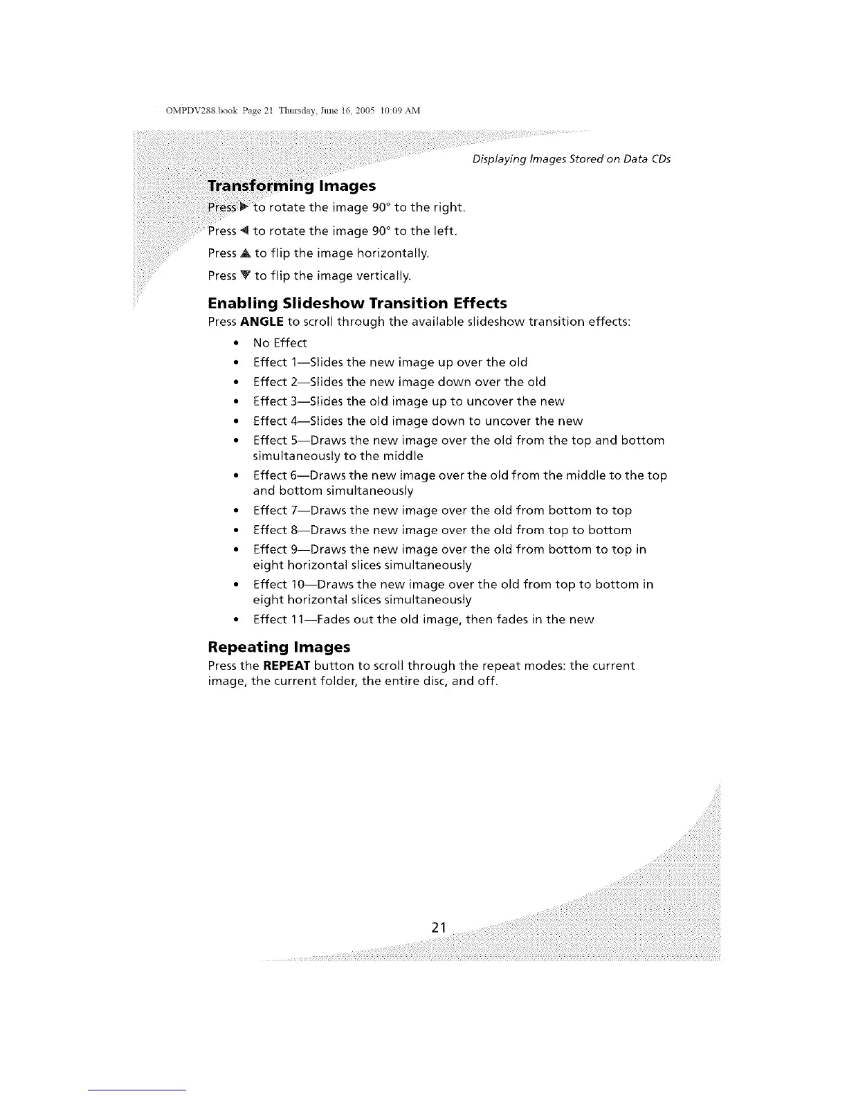 OMPDV288.book Page 21 Thm'sday, Jtme t6, 2005 t0:09 AM