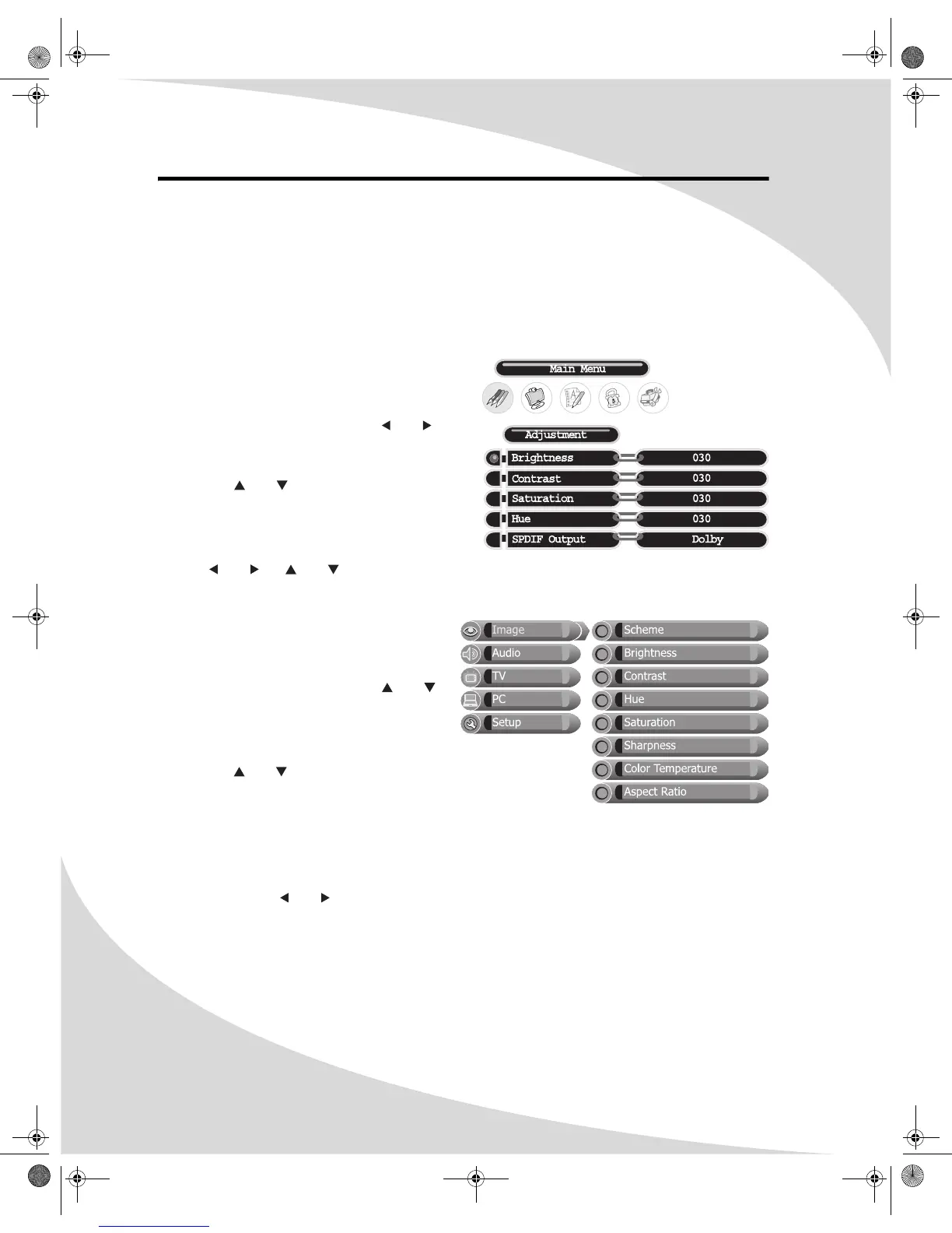 Note: When the source is set to DTV, there is a different set of OSD menus than for other
