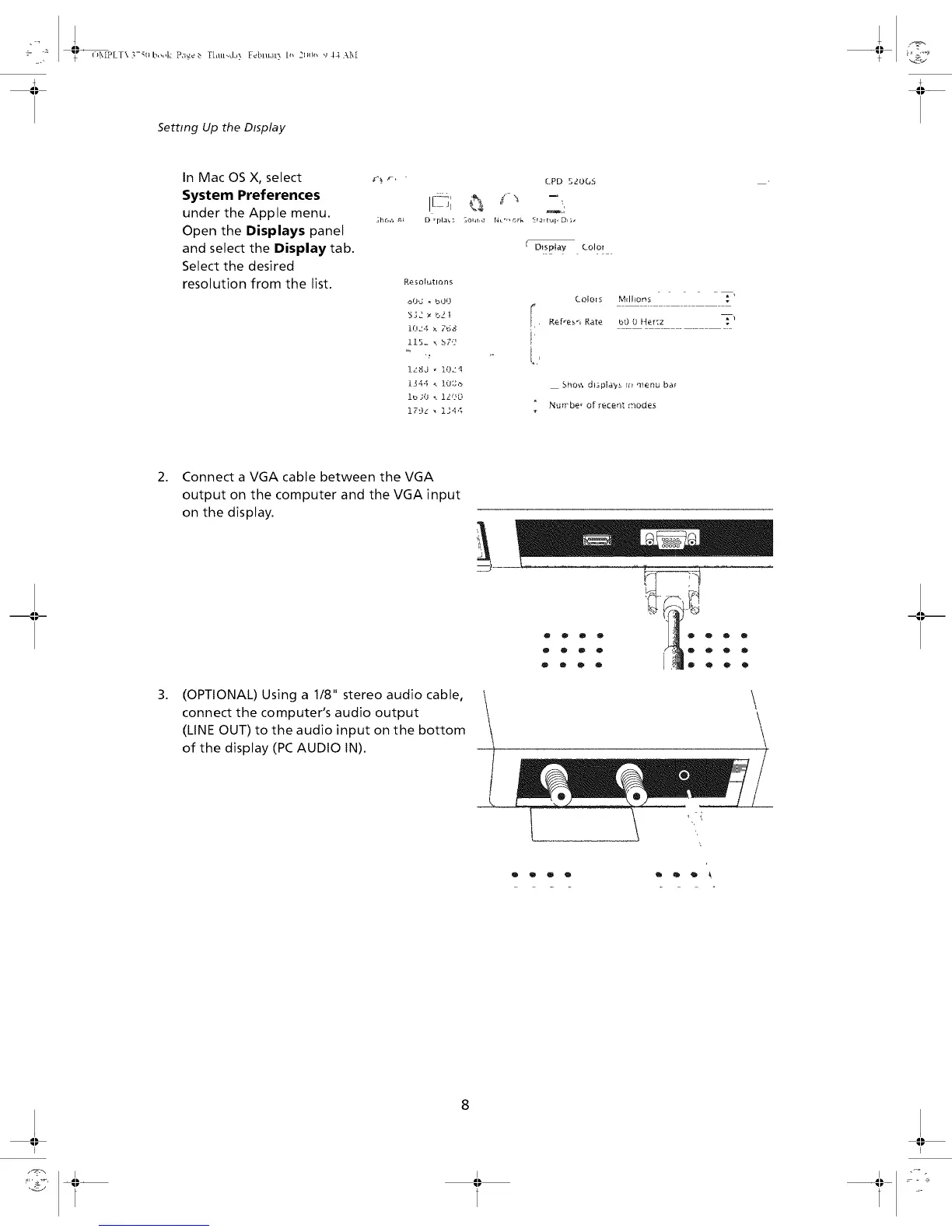 of the display (PC AUDIO IN).