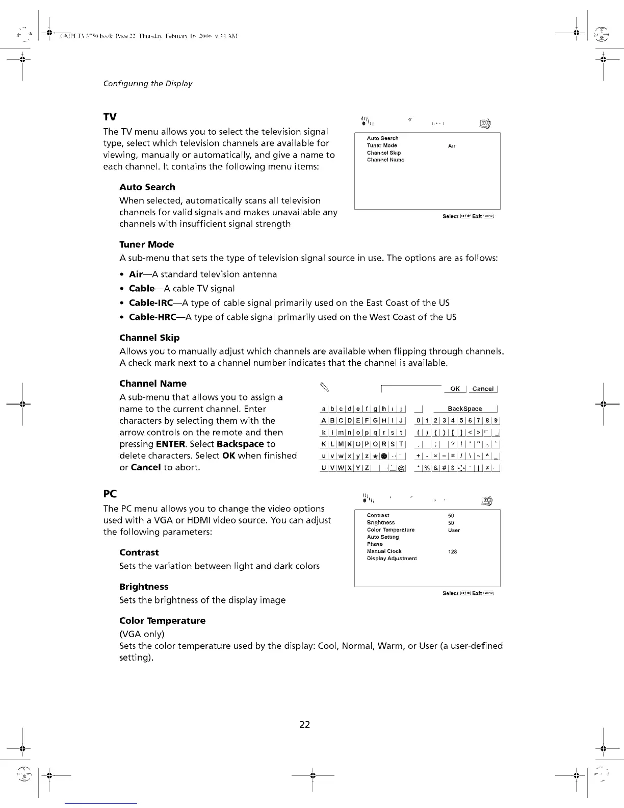 type, select which television channels are available for