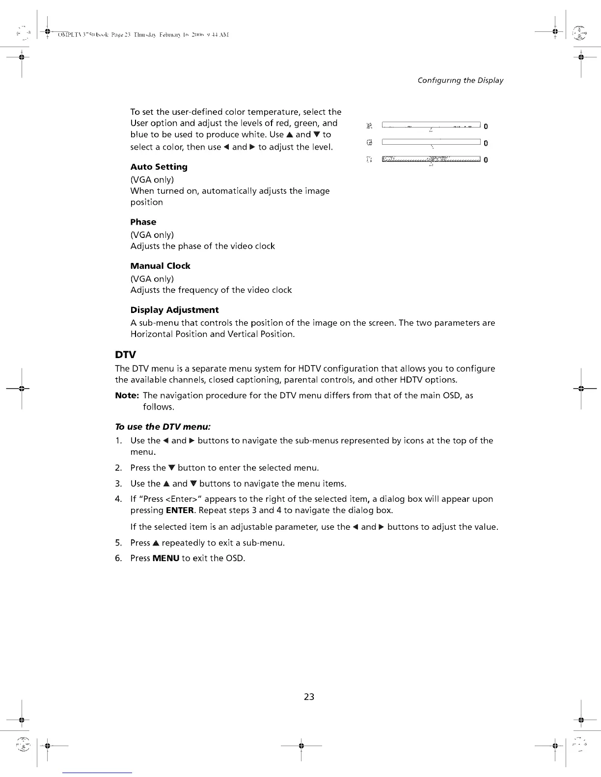 Note" The navigation procedure for the DTV menu differs from that of the main OSD, as