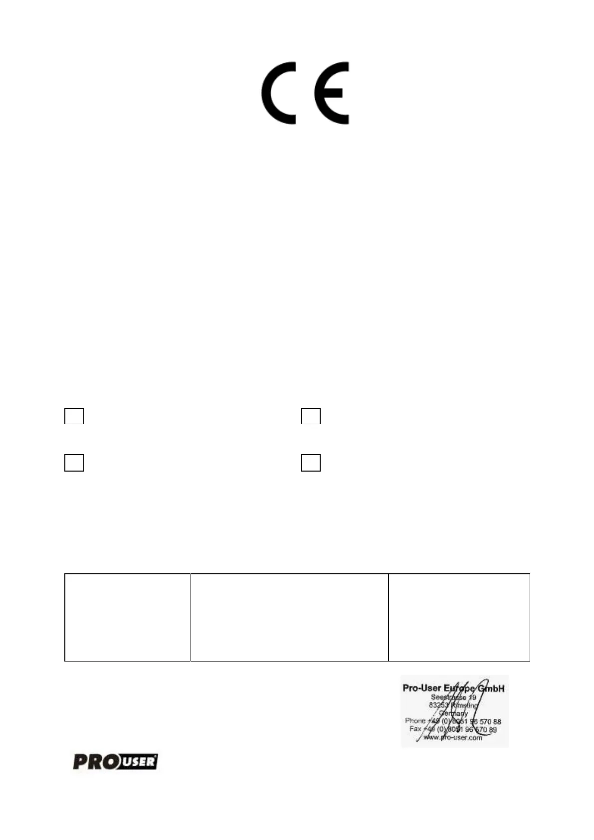 Firmenanschrift: Pro-User Europe GmbH, Seestrasse 19, 83253 Rimsting, Germany