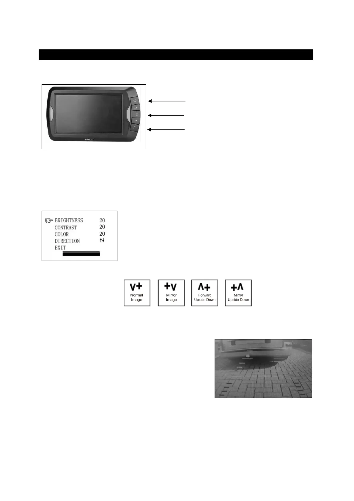 Wenn Sie den Schalter „Menu“ drücken, erscheint auf dem Monitor wie folgt: