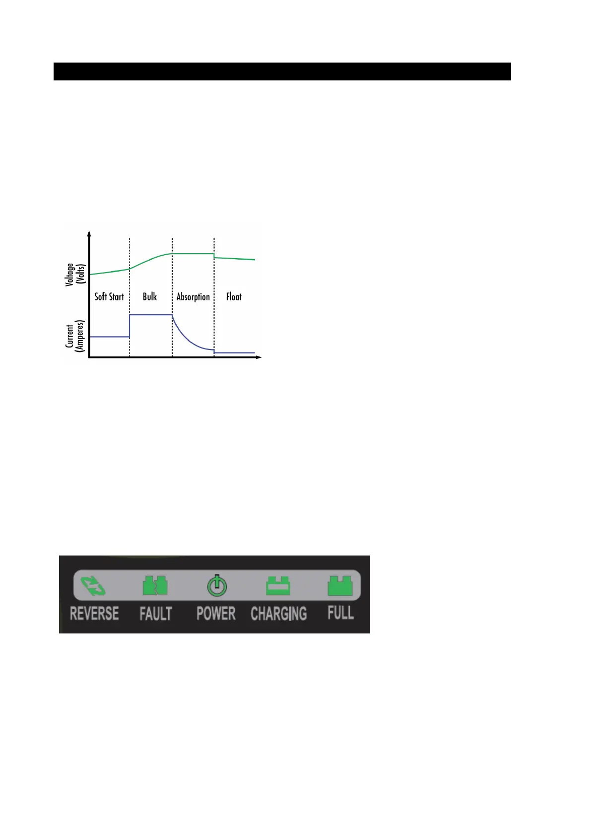 • Absorption: Completes the charge up to virtually 100% at a constant voltage. The