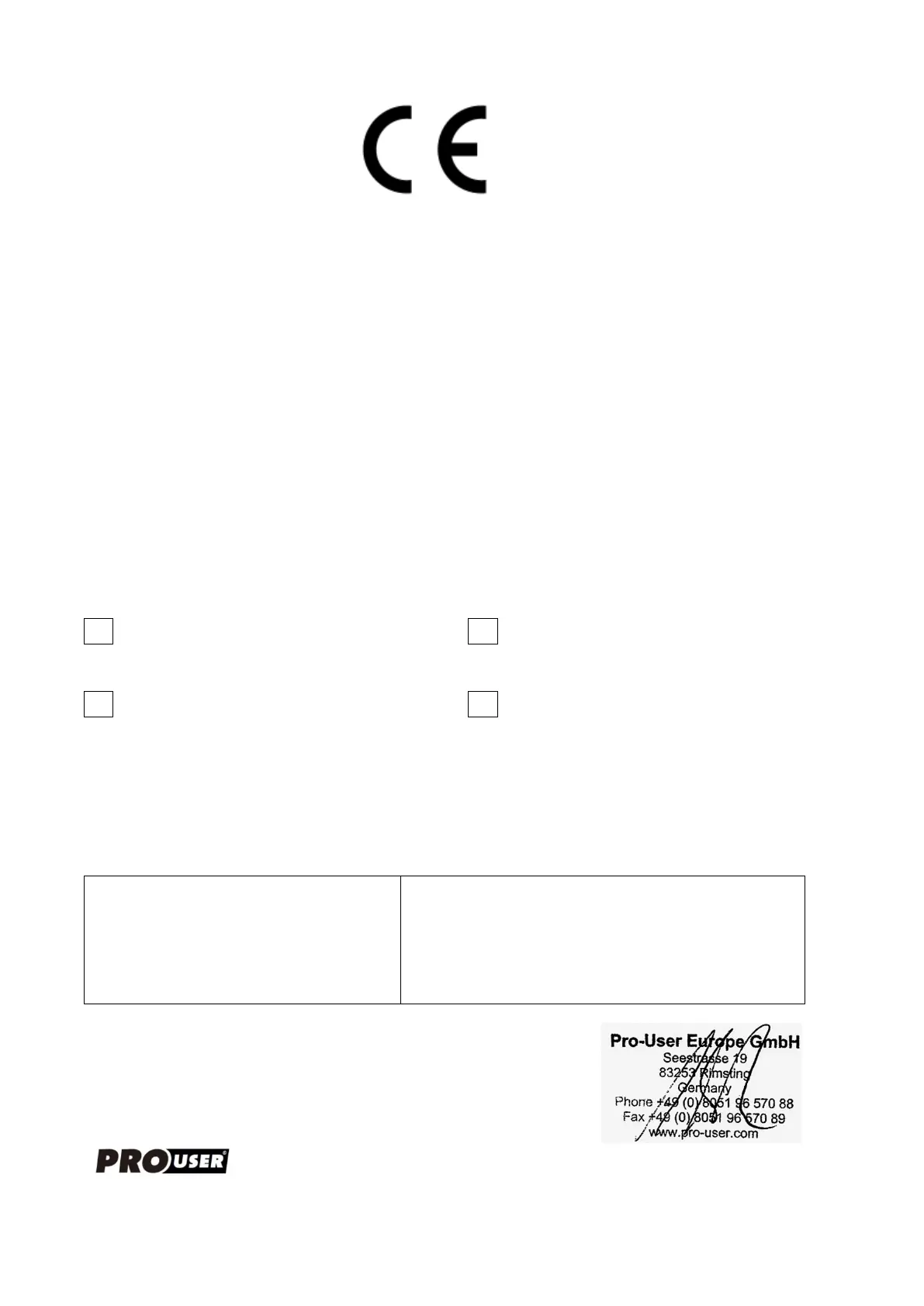 Firmenanschrift: Pro-User Europe GmbH, Seestrasse 19, 83253 Rimsting, Germany