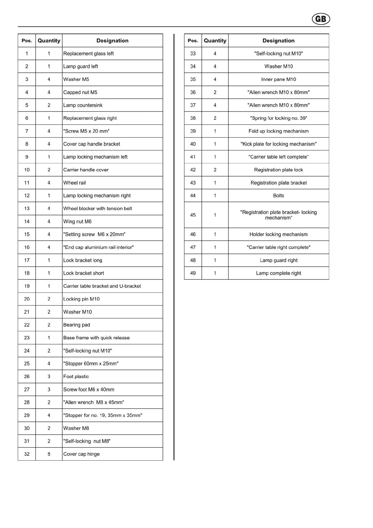 Appendix Spare parts overview - Table