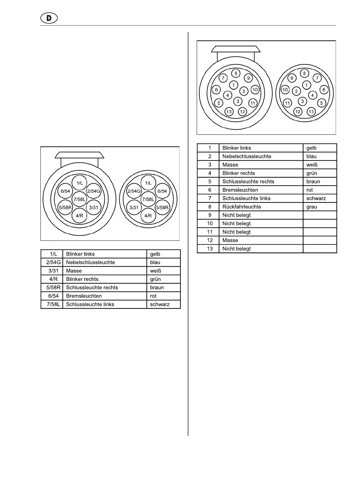 Träger über einen 7 und 13 poligen Stecker (Jaegers).