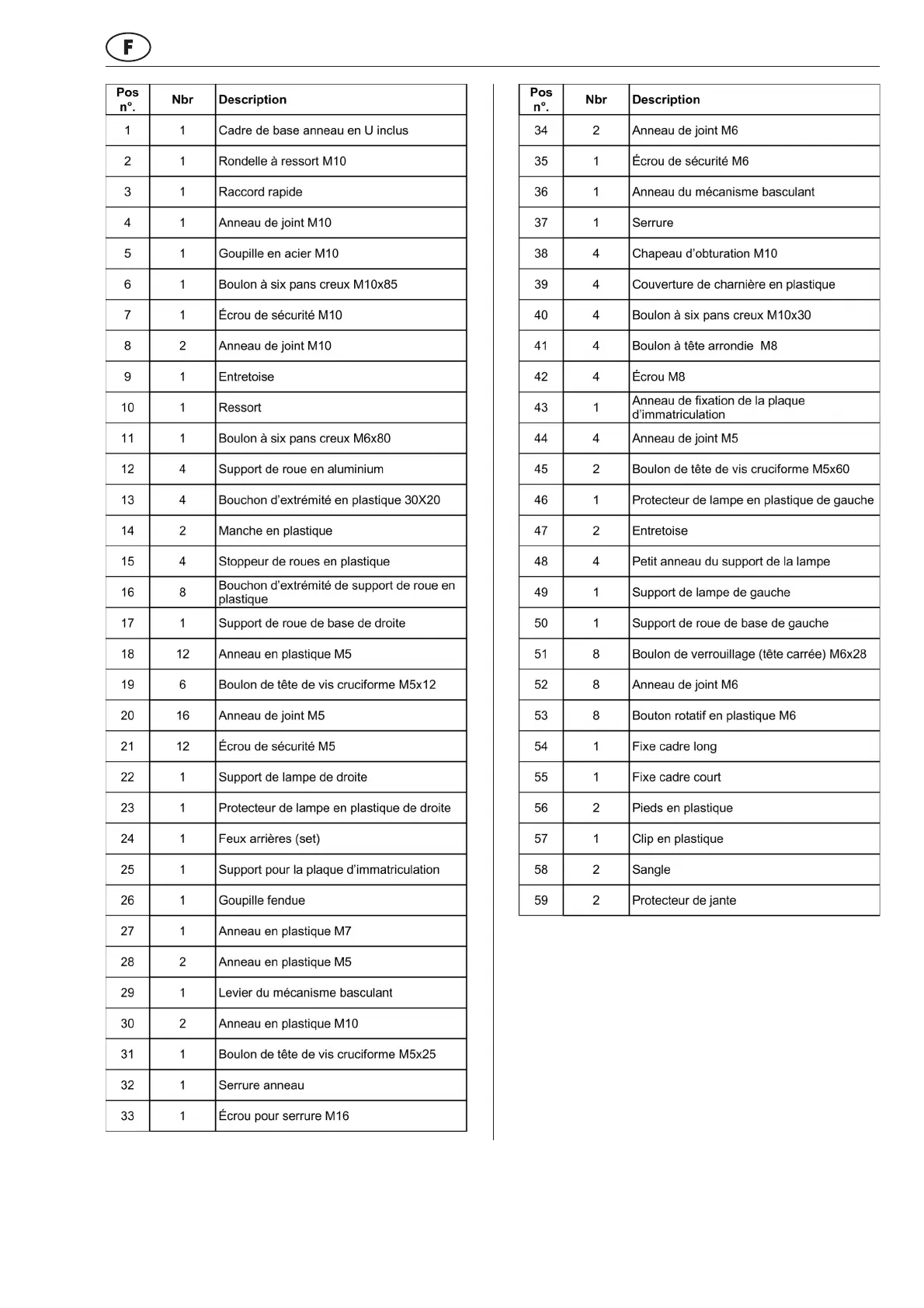 PROUSER DIAMANT - Aperçu des Pièces de Rechange - Tableau