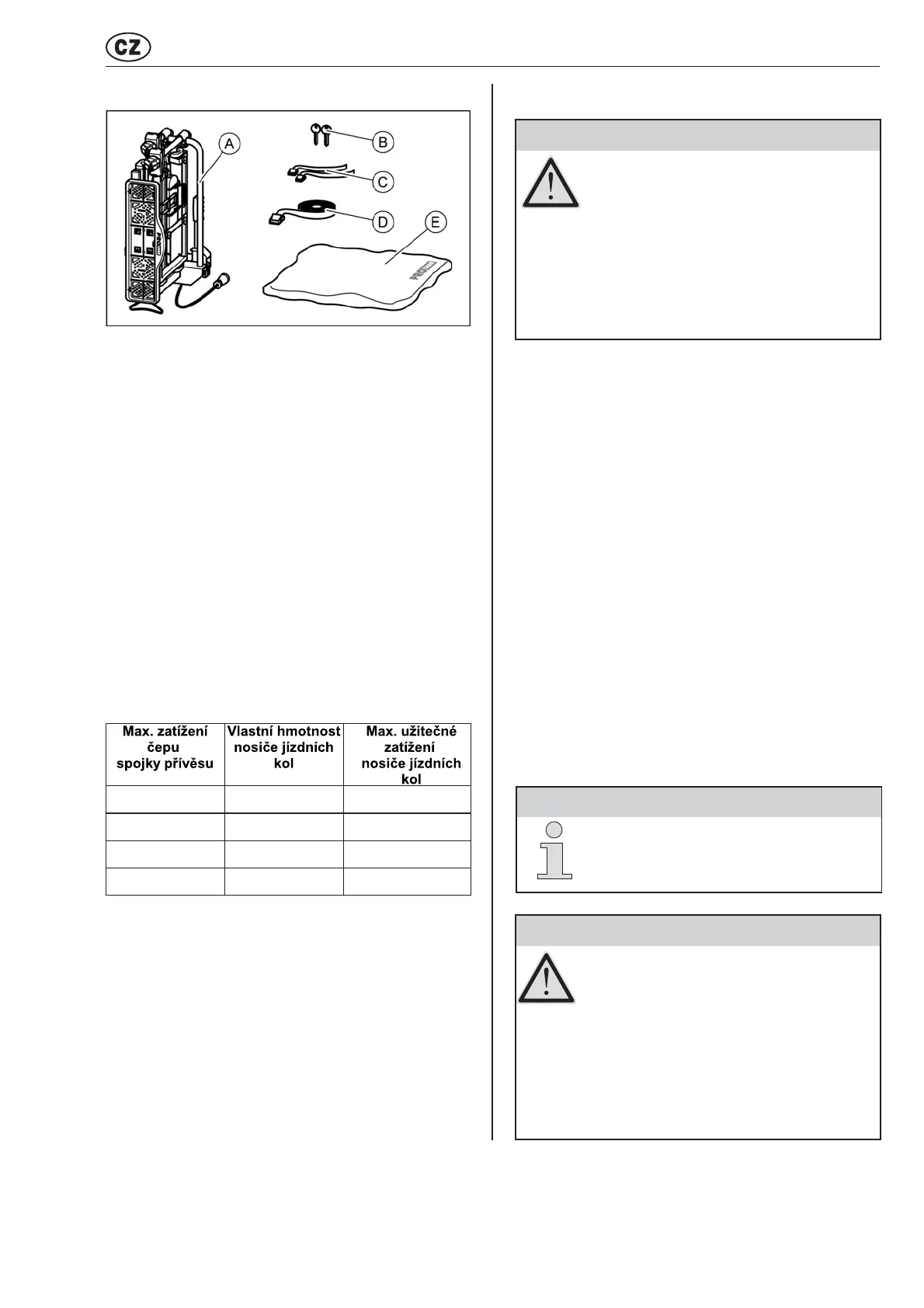 • Nosič jízdních kol namontujte pouze na