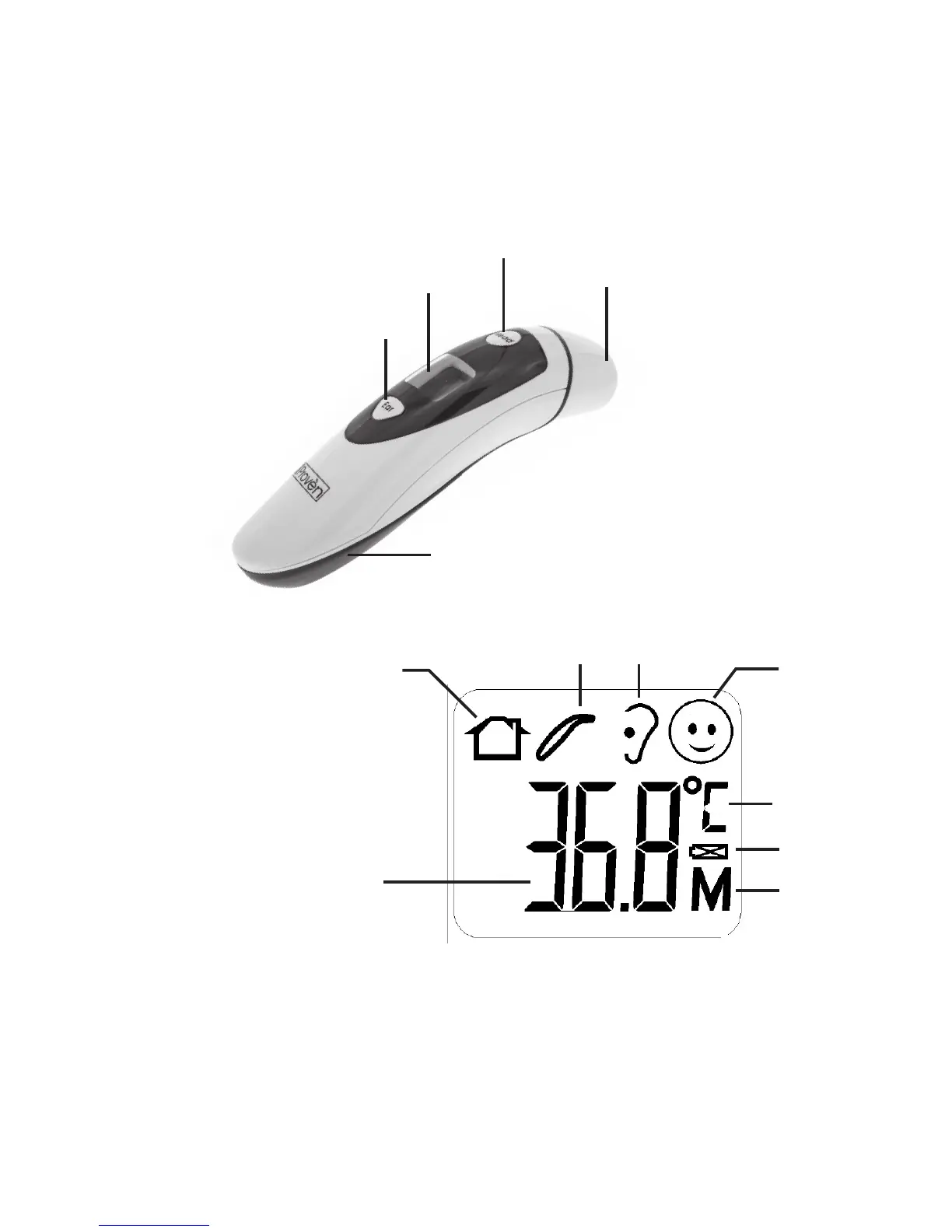 1. Infrared sensor: (Take o the cover before detecting the eardrum temperature.)