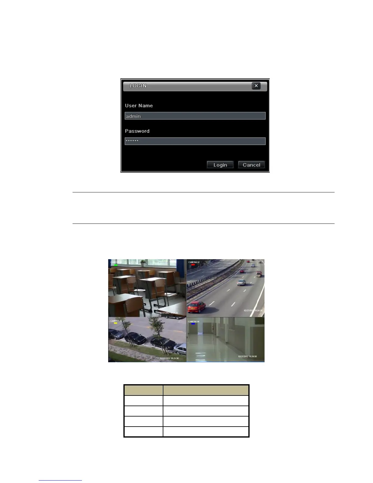 You can login or log off the NVR system. Once logged off you cannot do any other operation except