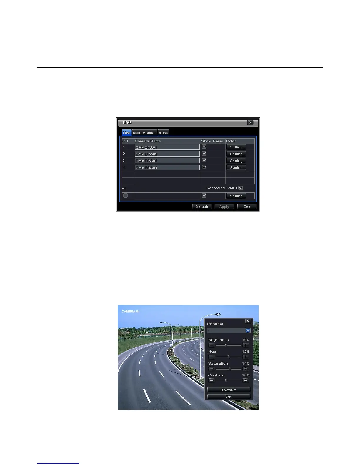 Step 1: Click “Setting” button for a particular camera/channel to see a window as below: