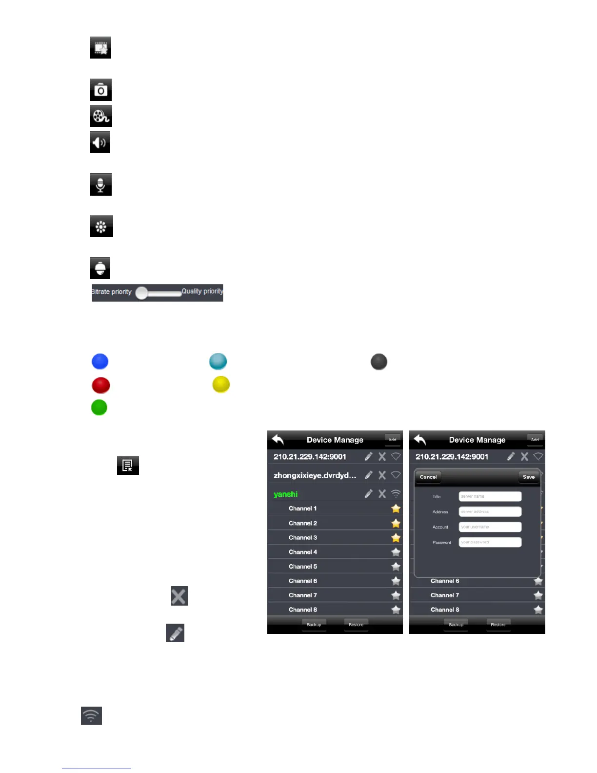 :Set video parameter button. Select the channel and click this button to set the video parameters