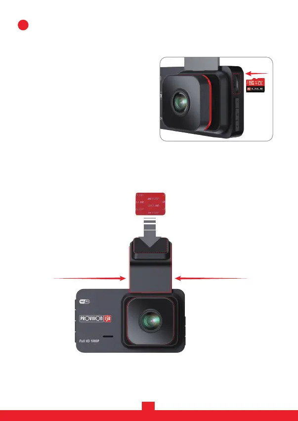 2. Slide in the bracket provided in the box to the camera, stick the 3M adhesive