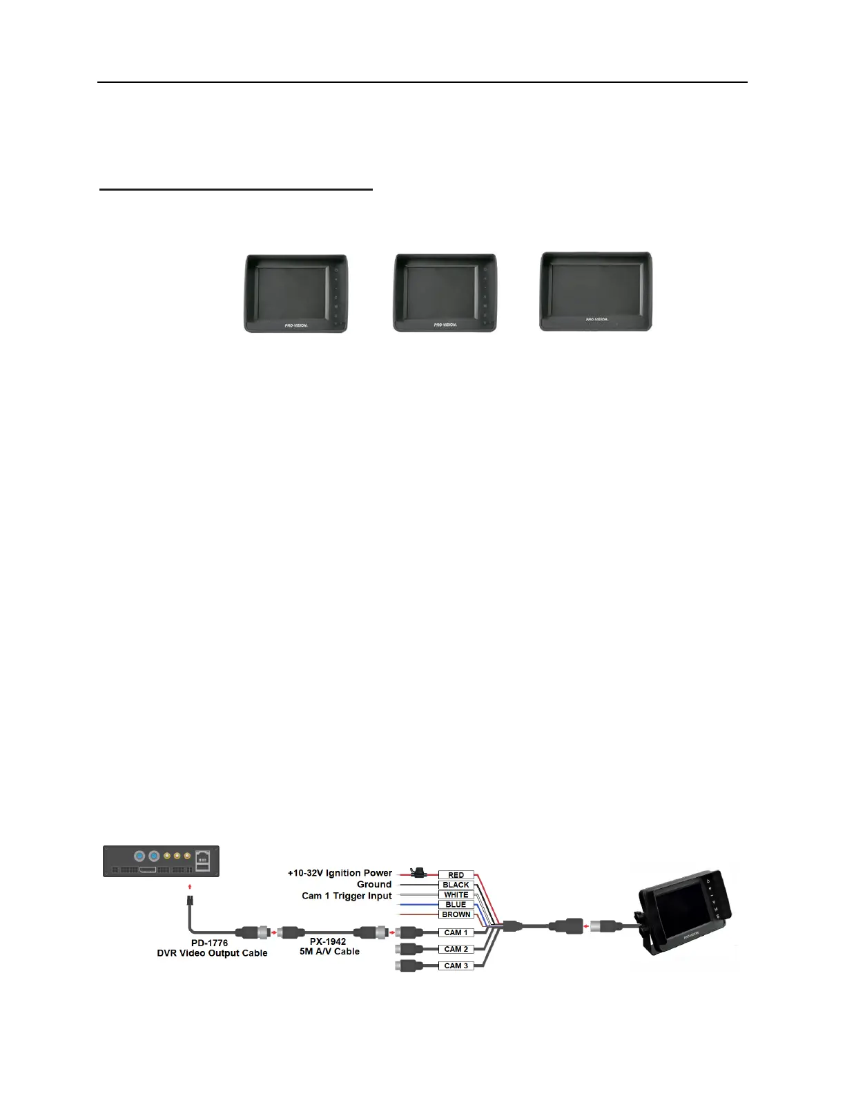 8. Connect the PX-1942 5M A/V cable to the CAM 1 (Camera 1) input of the monitor power harness,