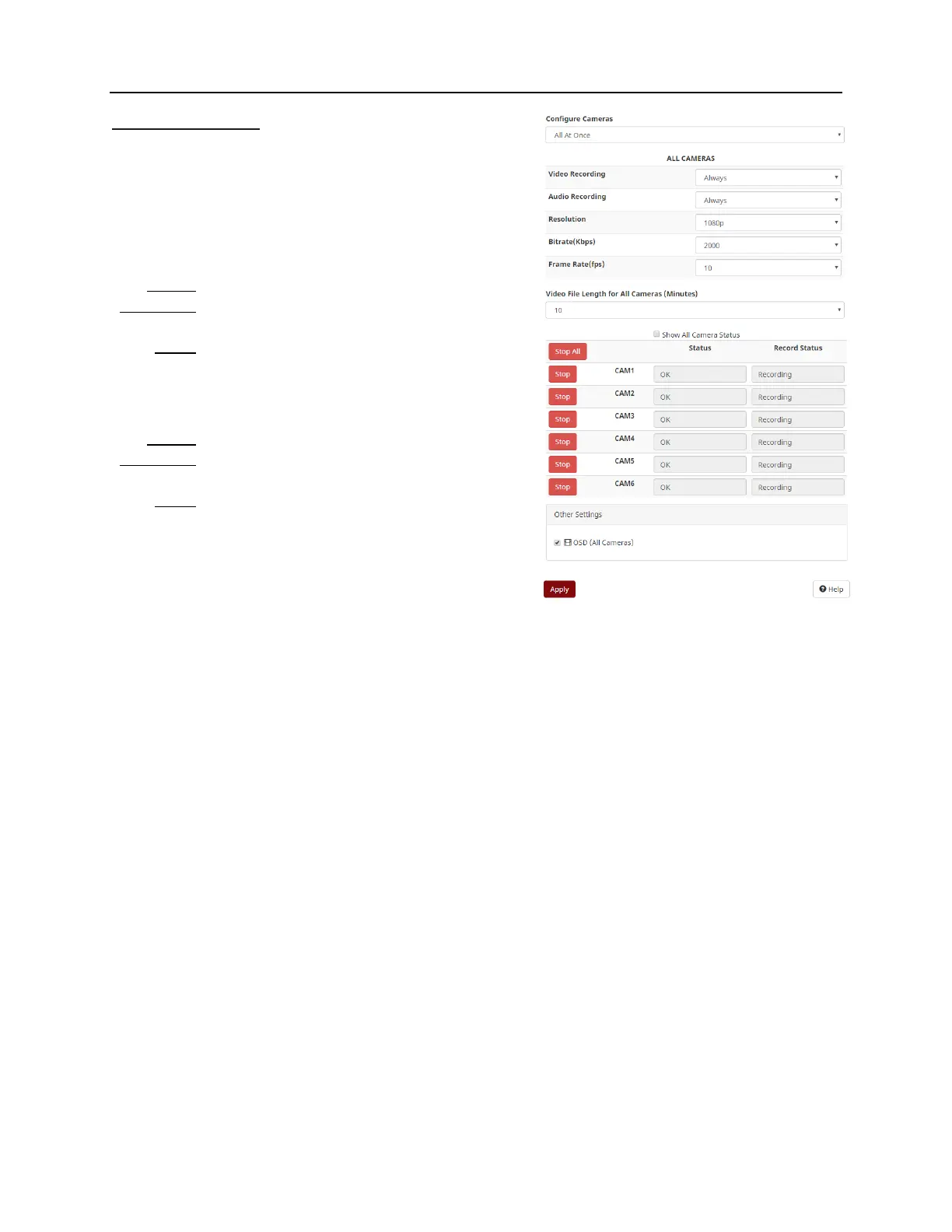 IMPORTANT! The maximum total bitrate of all cameras must be less than 16,000Kbps when recording to
