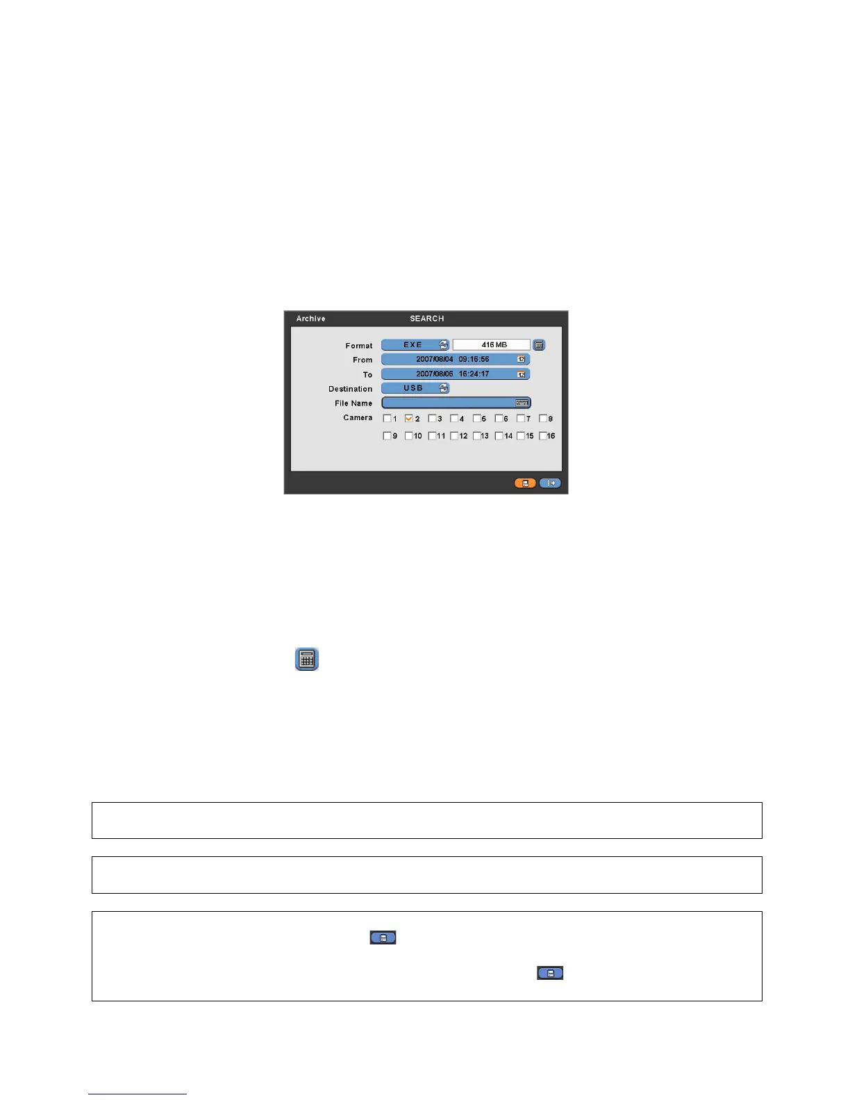 ⑦ Check a check box next to a camera with the video that want to store. User can archive multi channel at the same