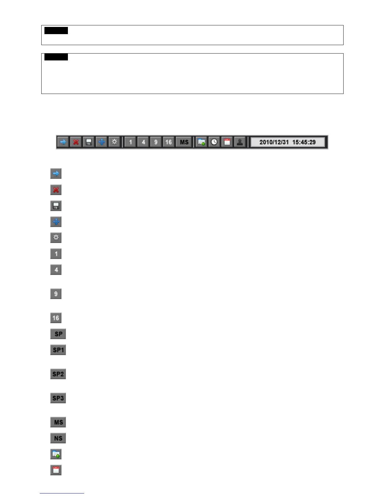 : Turn the display as 1 channel full screen. Additional click on full screen, it will change to next channel in sequence.