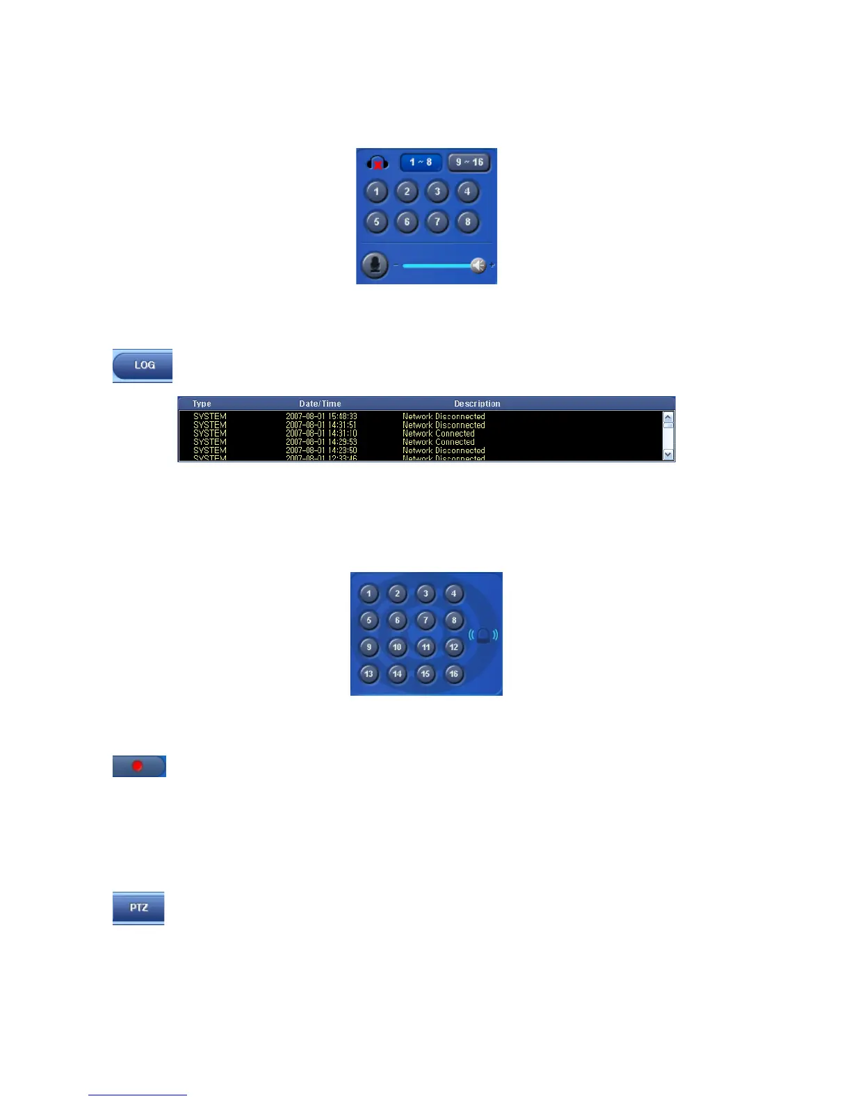 Click on PTZ button in Watch mode and the following screen will appear.
