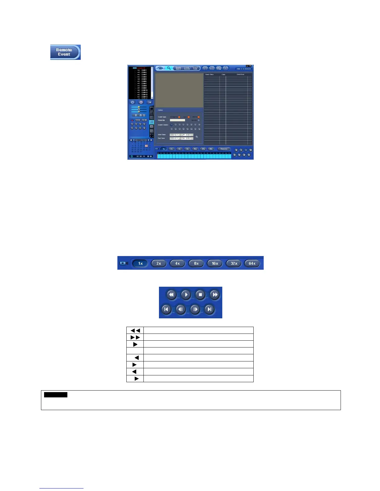The REMOTE SEARCH button allows user to search event recorded data of DVR.
