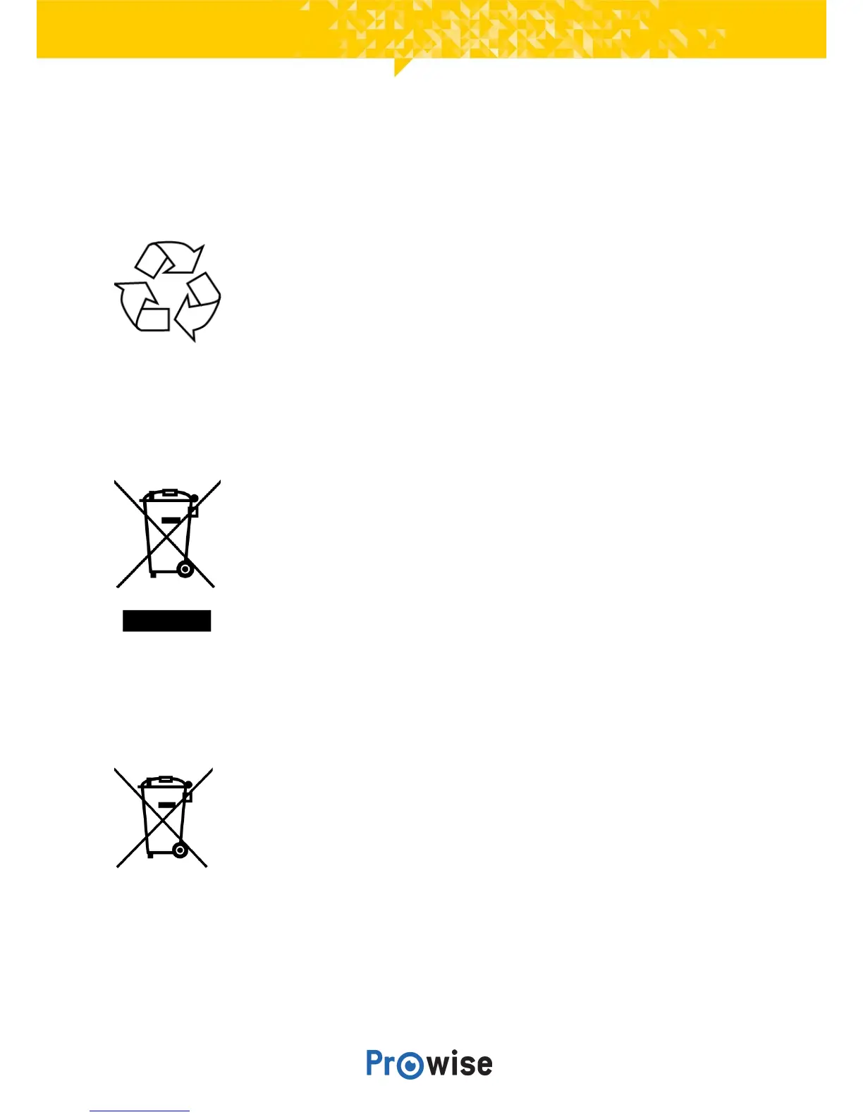 If you have questions about the correct disposal of your touchscreen, please contact Prowise or a certified