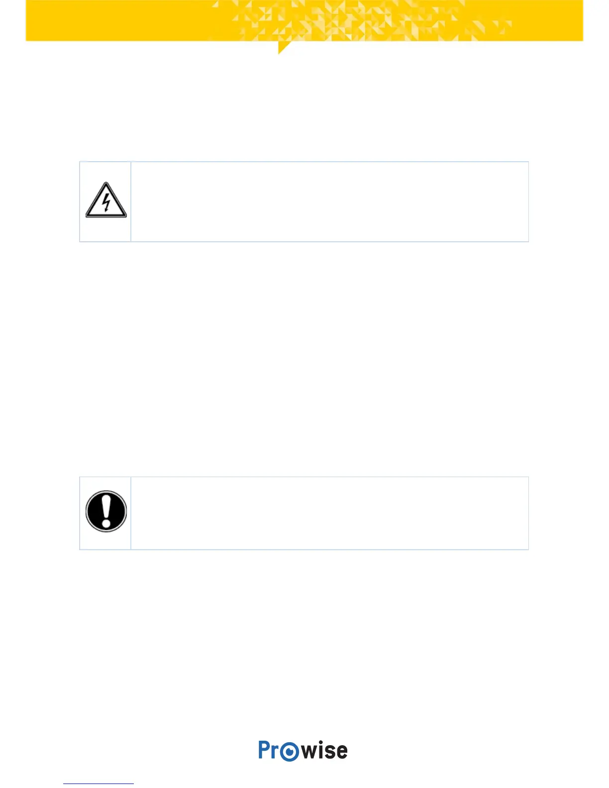 Only use the power cable supplied by Prowise to connect the ProLine+ Multi-touchscreen to the mains