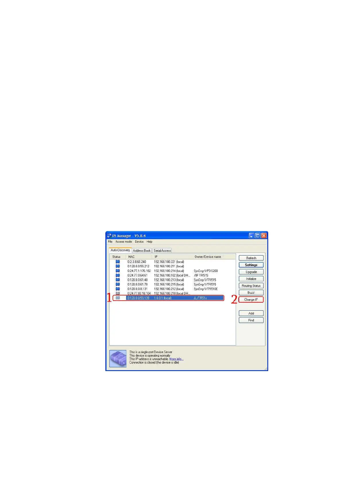 Server Toolkit\Tibbo DS Manager). Find your TR515/TR510 on the