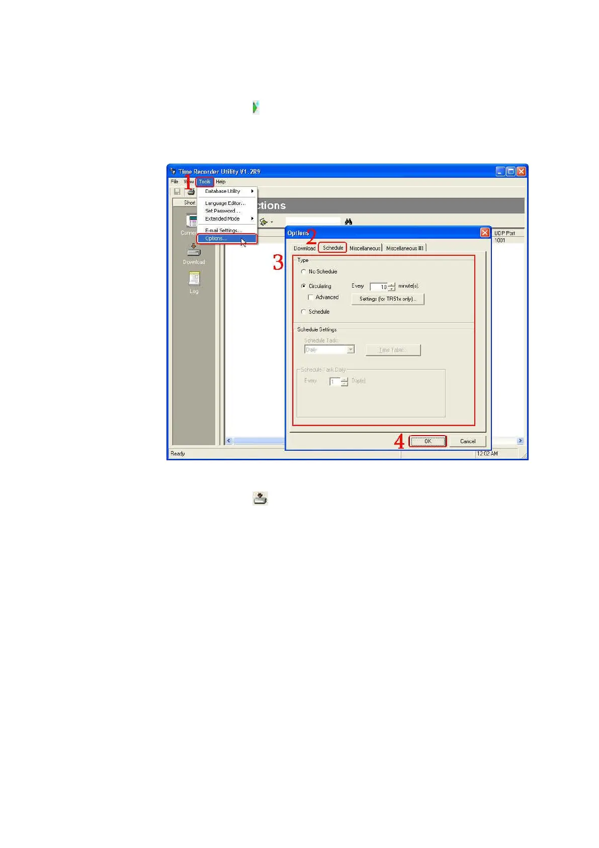 [Circulating] or [Schedule] you like. Then click [OK]. The data will be