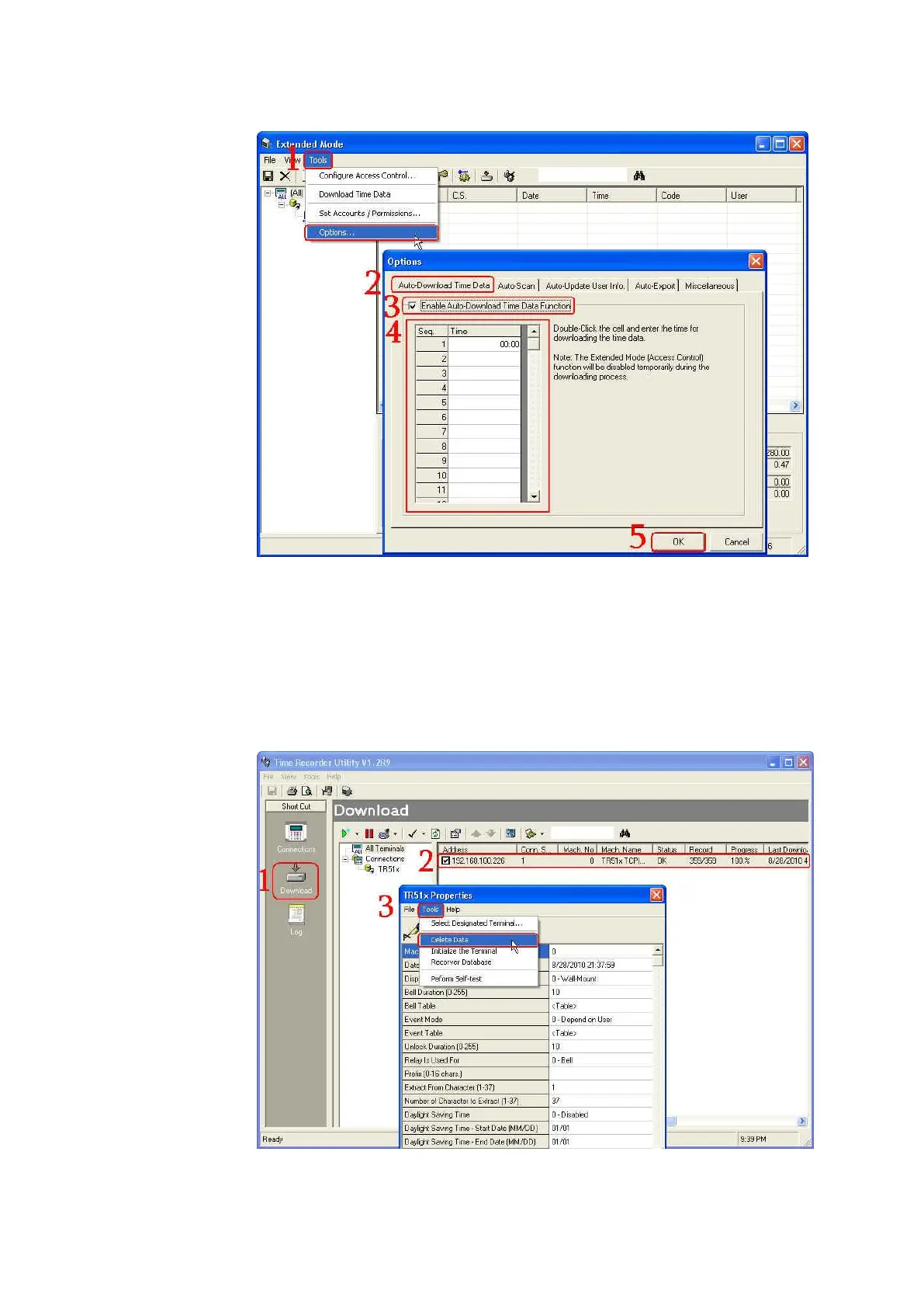 Use “Delete Data” function in the software Time Recorder Utility to