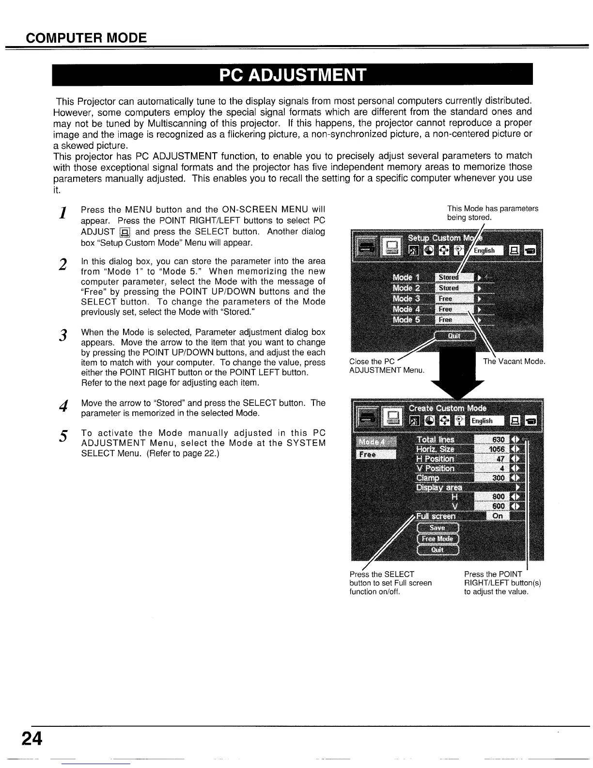 Proxima UltraLight LX2 - PC Adjustment; Custom Mode Setup and Memory
