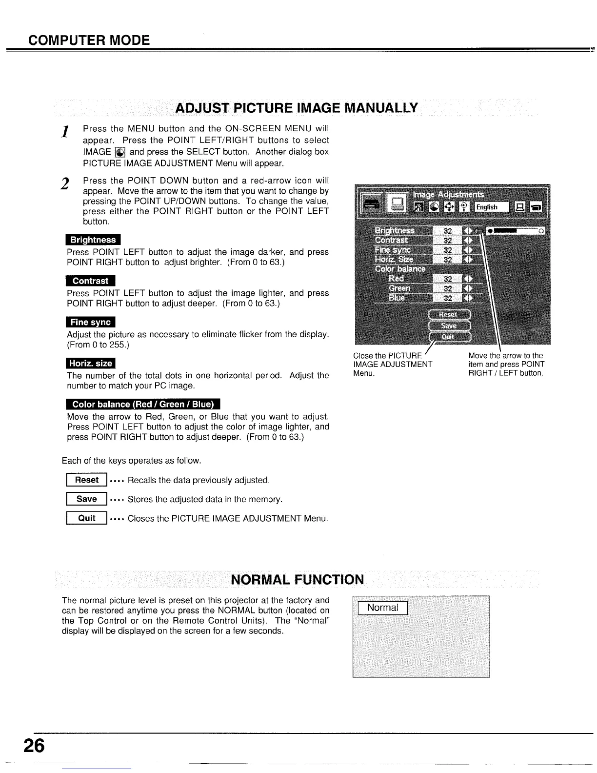 Proxima UltraLight LX2 - Manual Picture Adjustments; Image Adjustment Options
