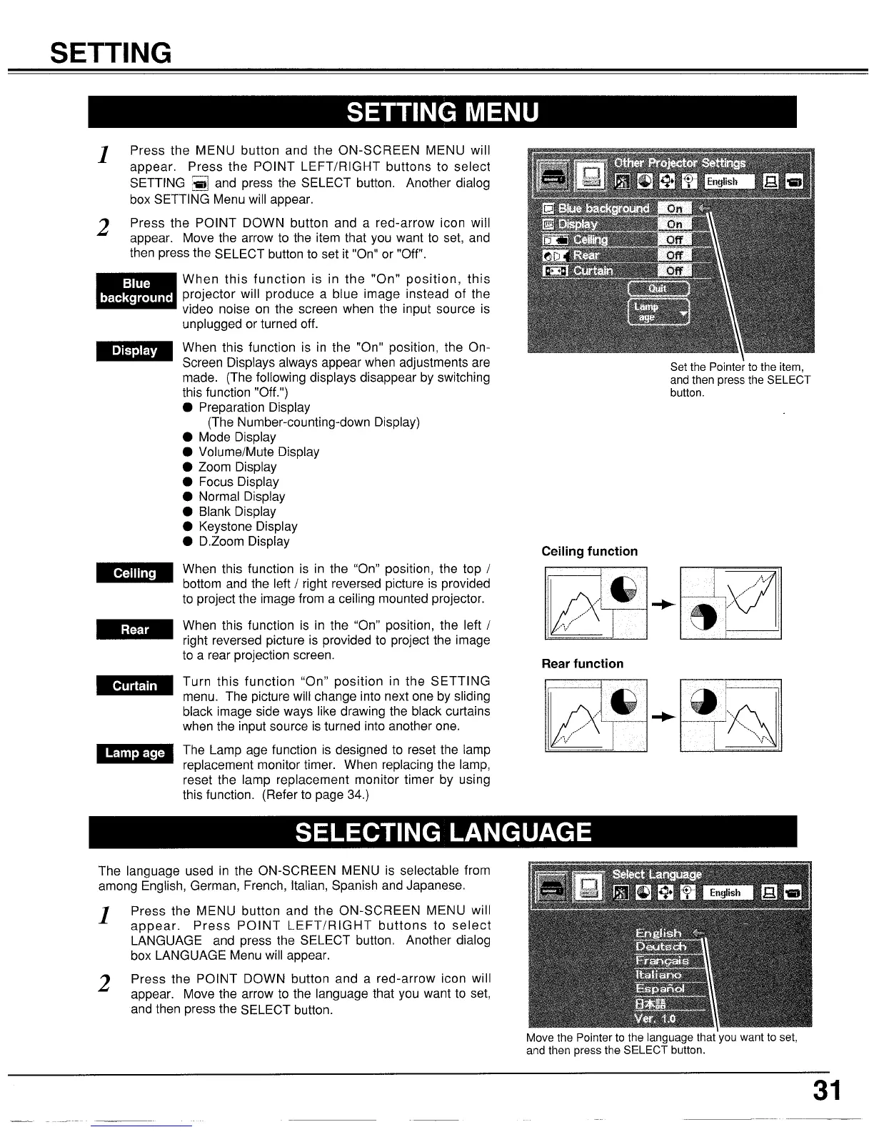 Proxima UltraLight LX2 - Settings Menu; Projector Settings Configuration