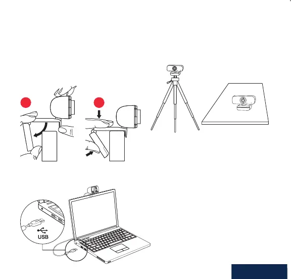 pen Sie den Clip auf und setzen die Webcam über den Rand des Bildschirms.