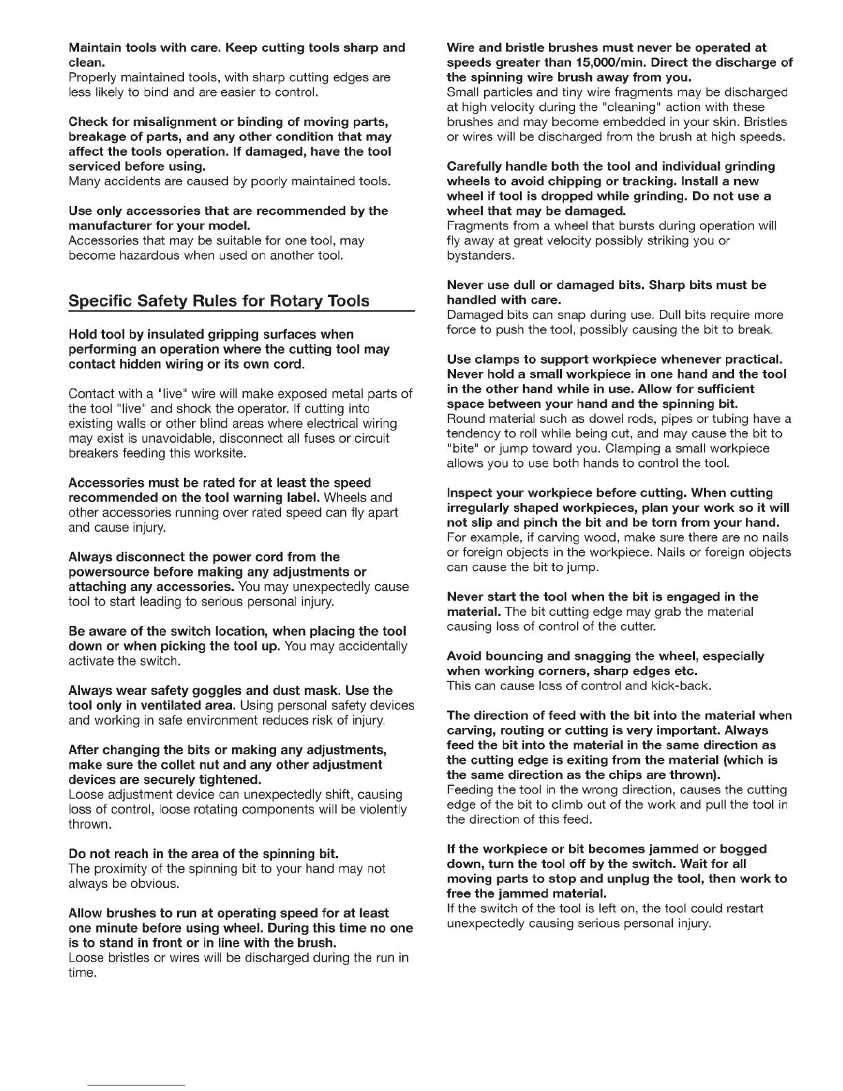 Proxxon FBS 115/E - Specific Safety Rules for Rotary Tools; Handling Electrical Hazards; Pre-Operation Checks; Securing Accessories