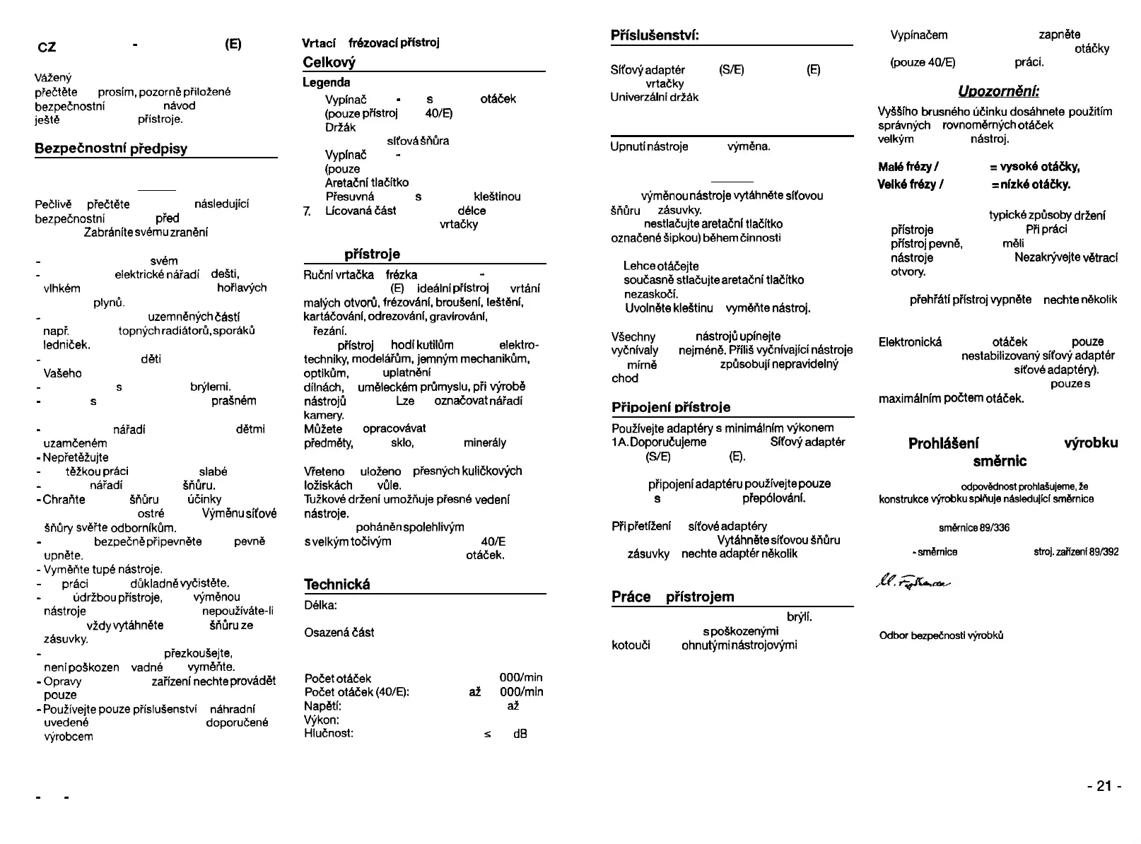 bezpeCnostni piedpisy a navod k obsluze