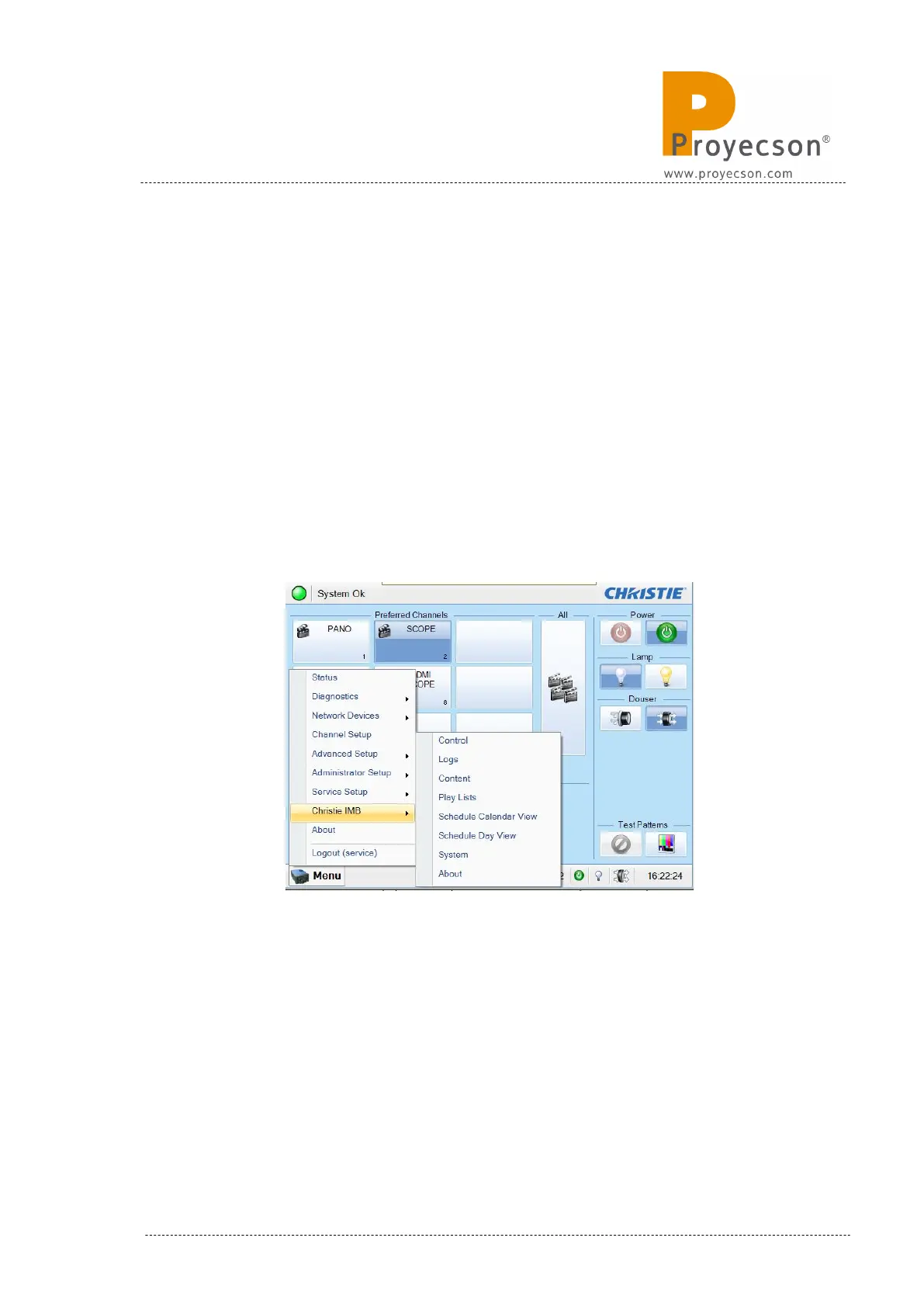 • Open the “Menu -> Christie IMB System”→ window. Figure 8.8.1A.