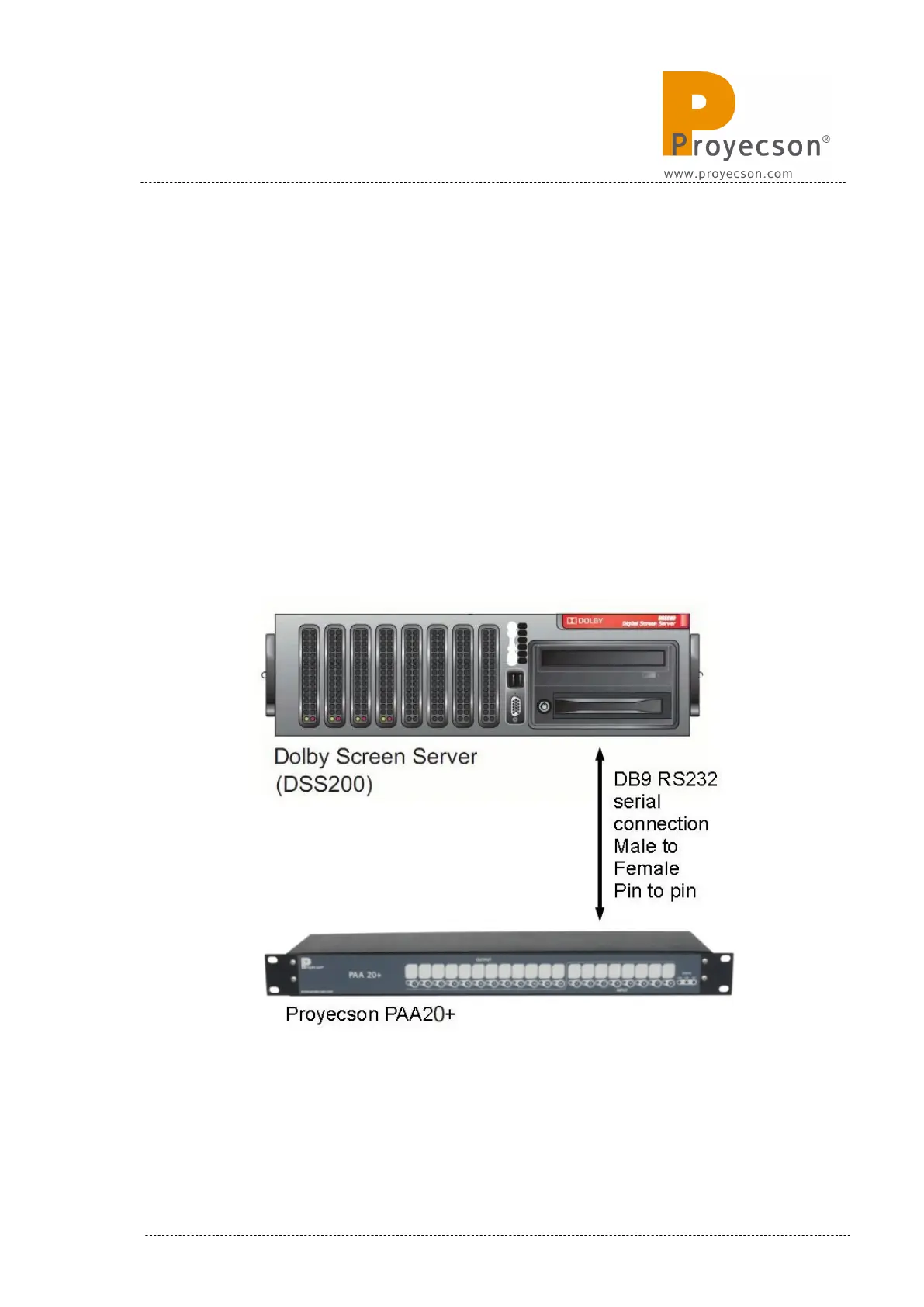 Connect the RS232 serial port of the Dolby server to the RS232 serial port of