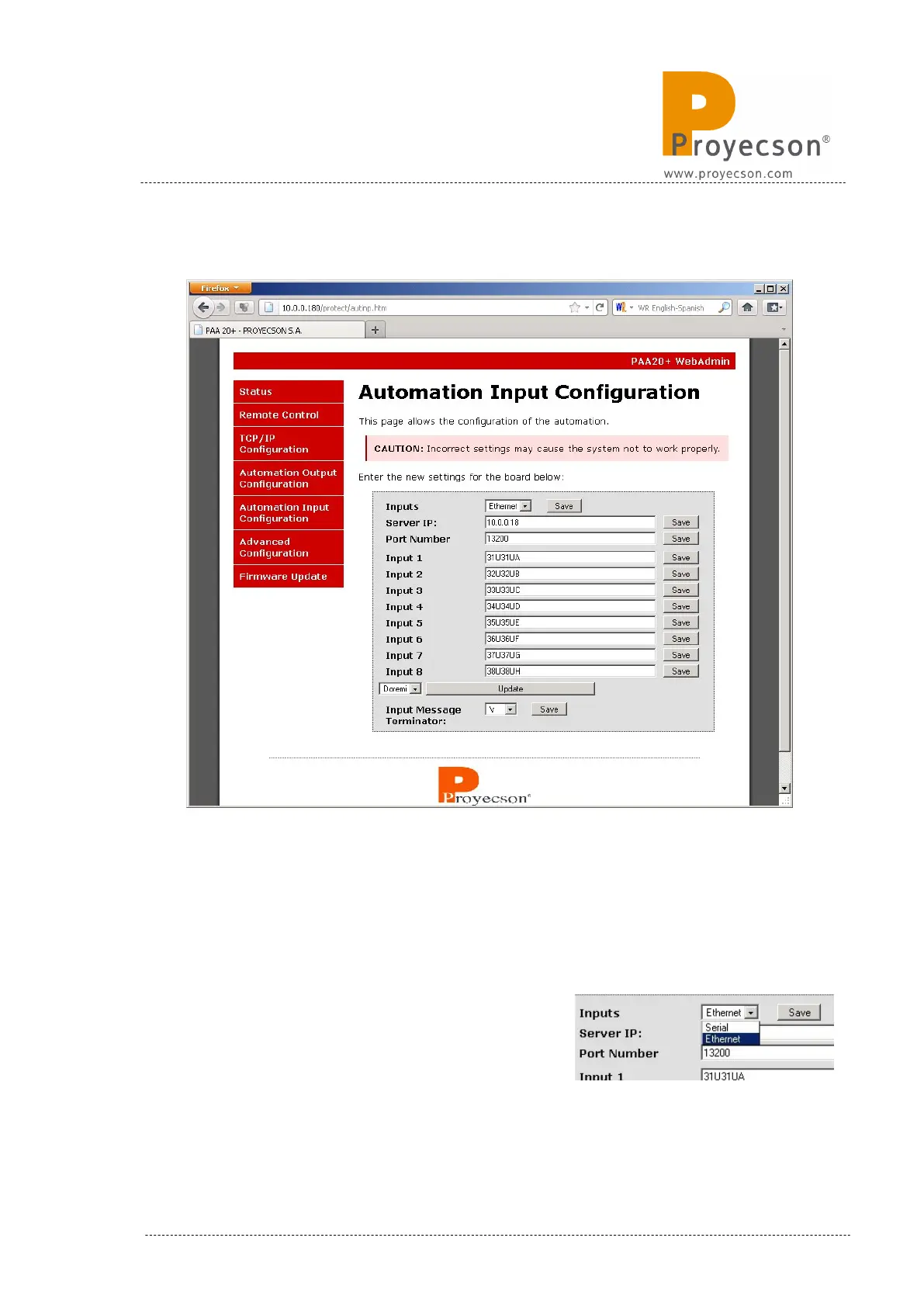 7.2.6 AUTOMATION INPUT CONFIGURATION PAGE.