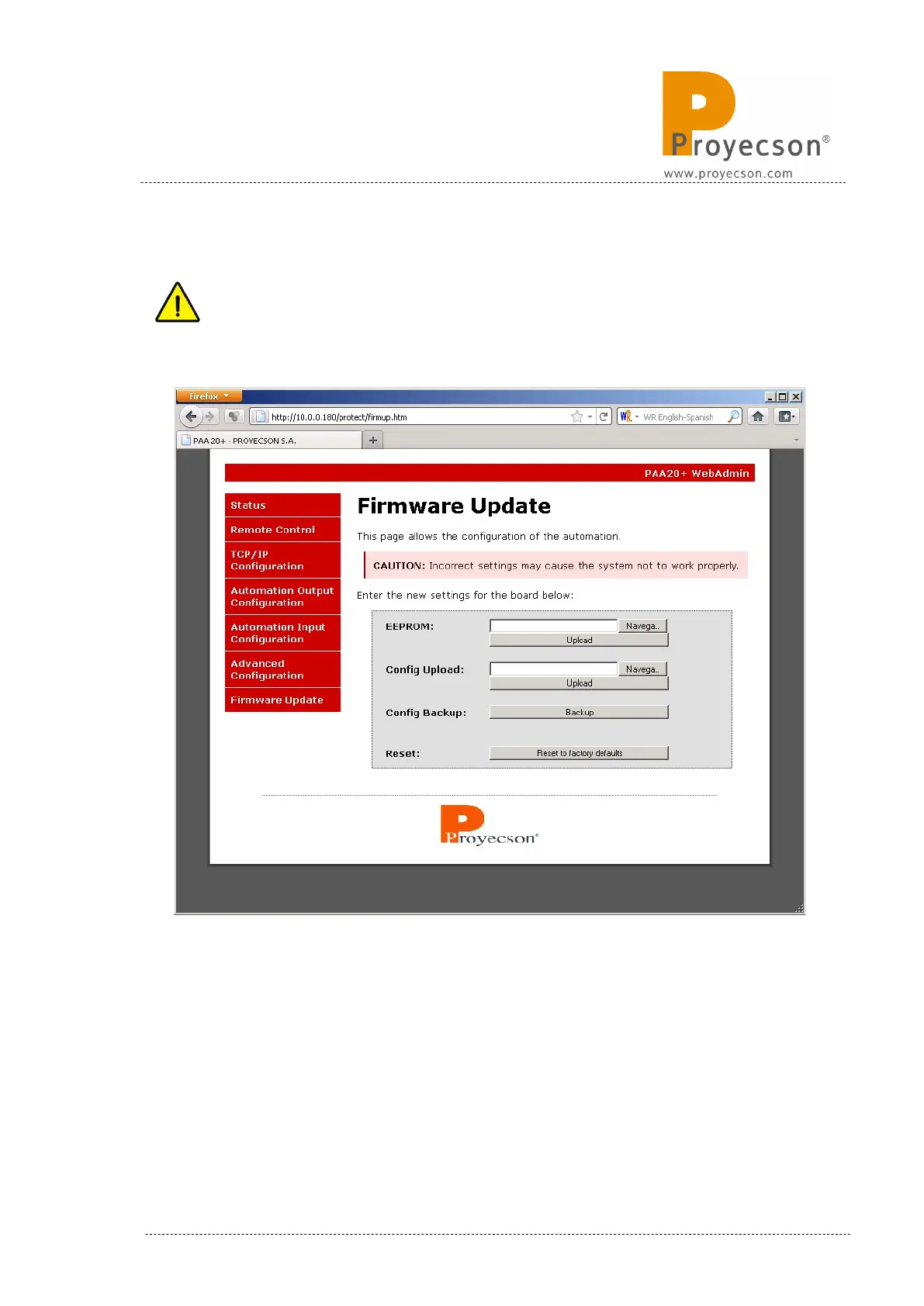 EEPROM: Using this field you can upload the WebAdmin interface, located in