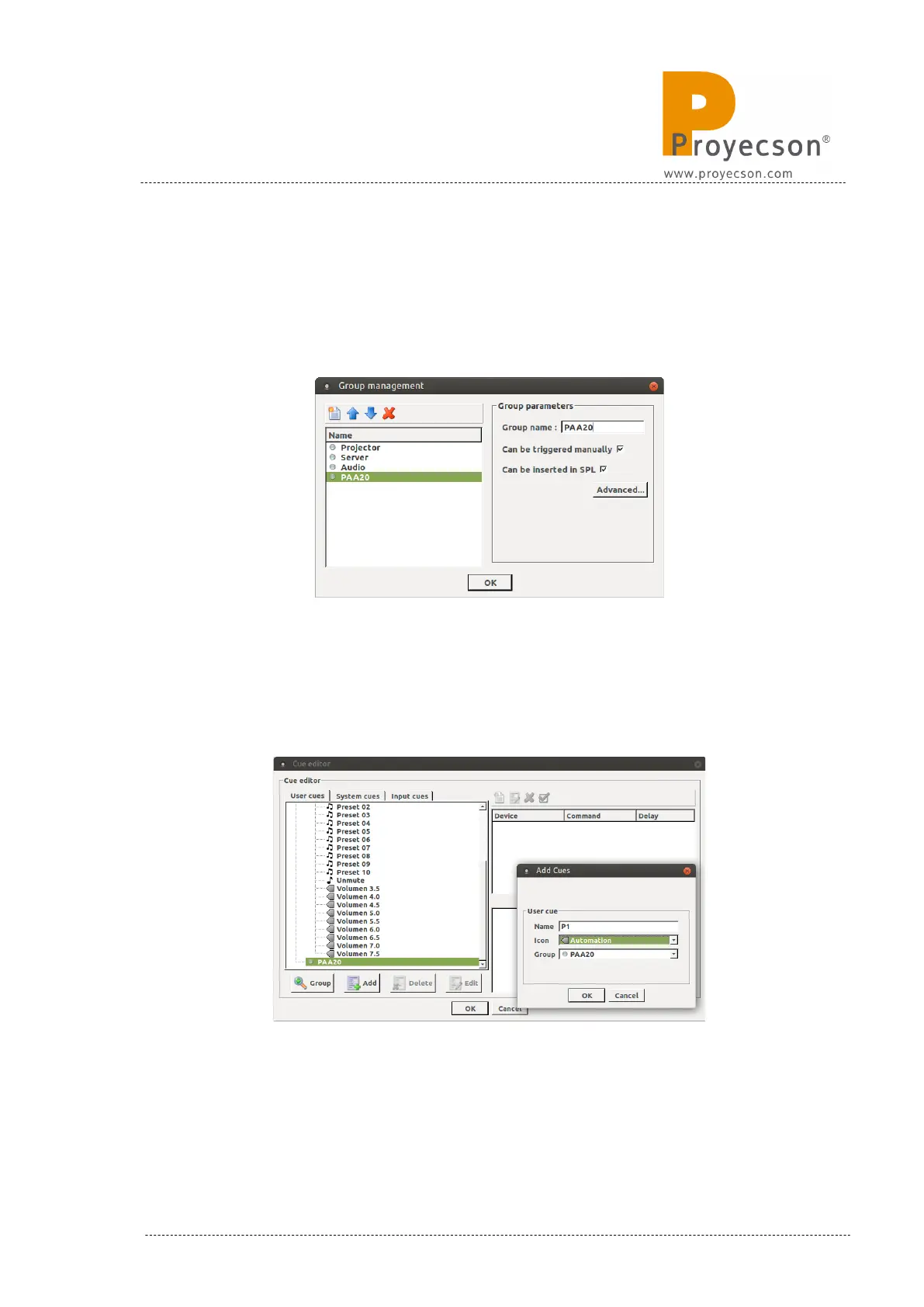 PAA20+ cues group. In the example we used the name “PAA20”. Then