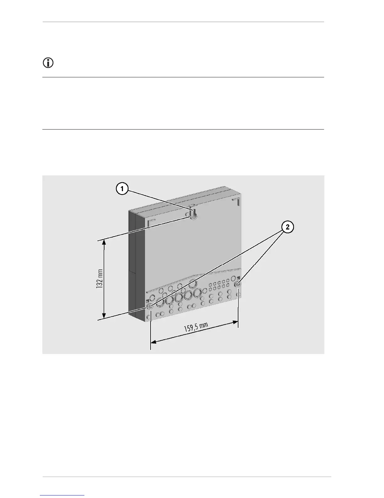 Fasten the controller with the screws from the inside through the bottom screw holes (2).