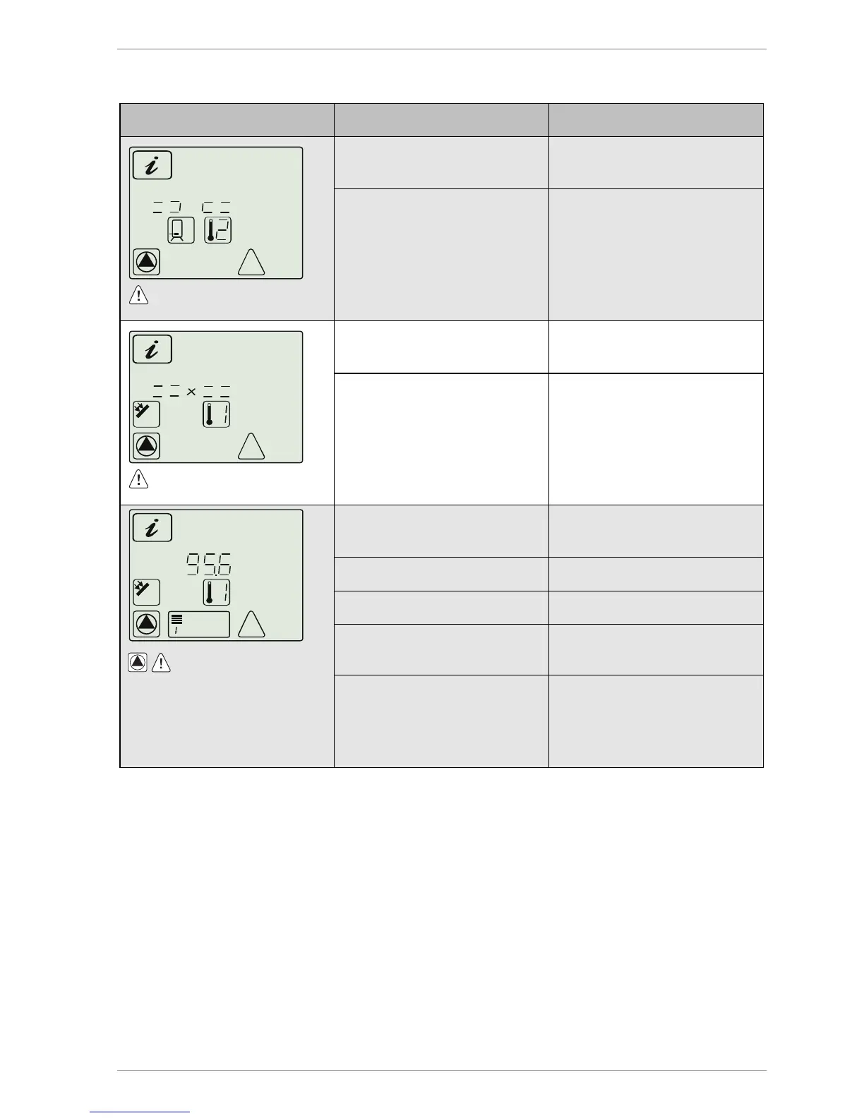 Fault message Possible cause Action