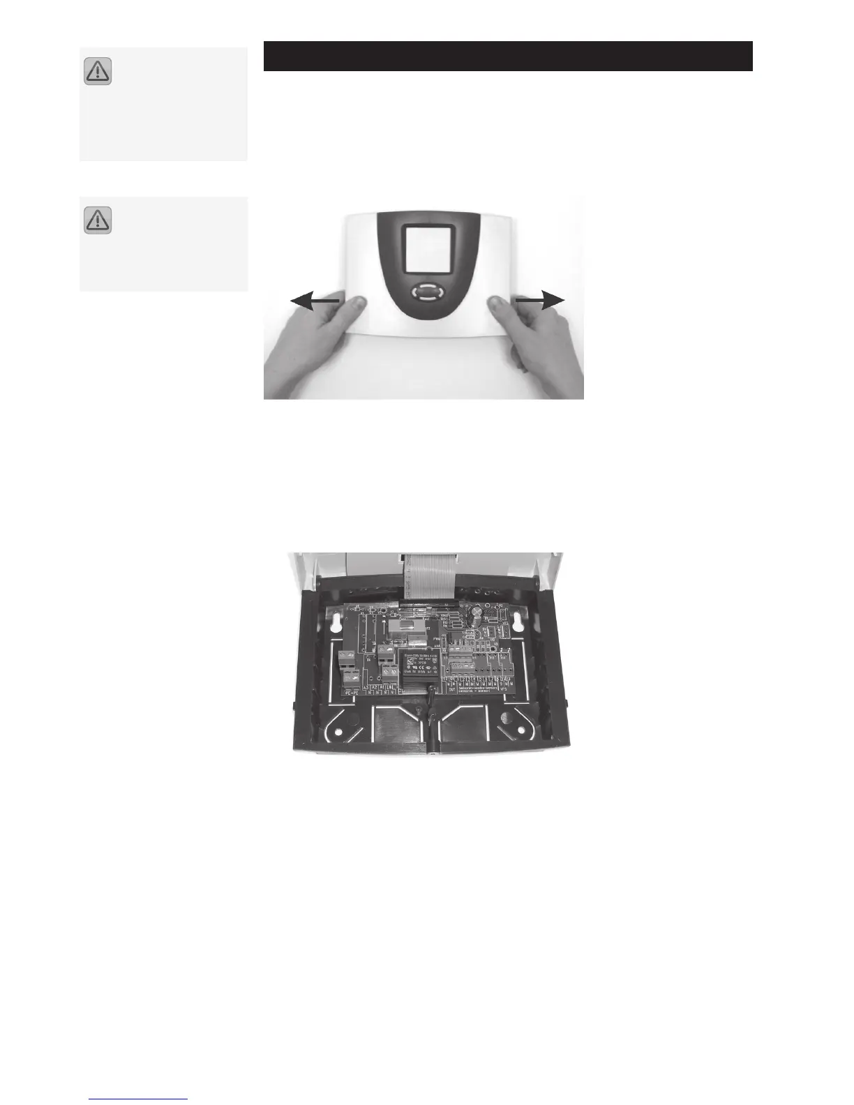 two latches. Release the housing cover by pulling the sides outwards (see picture)